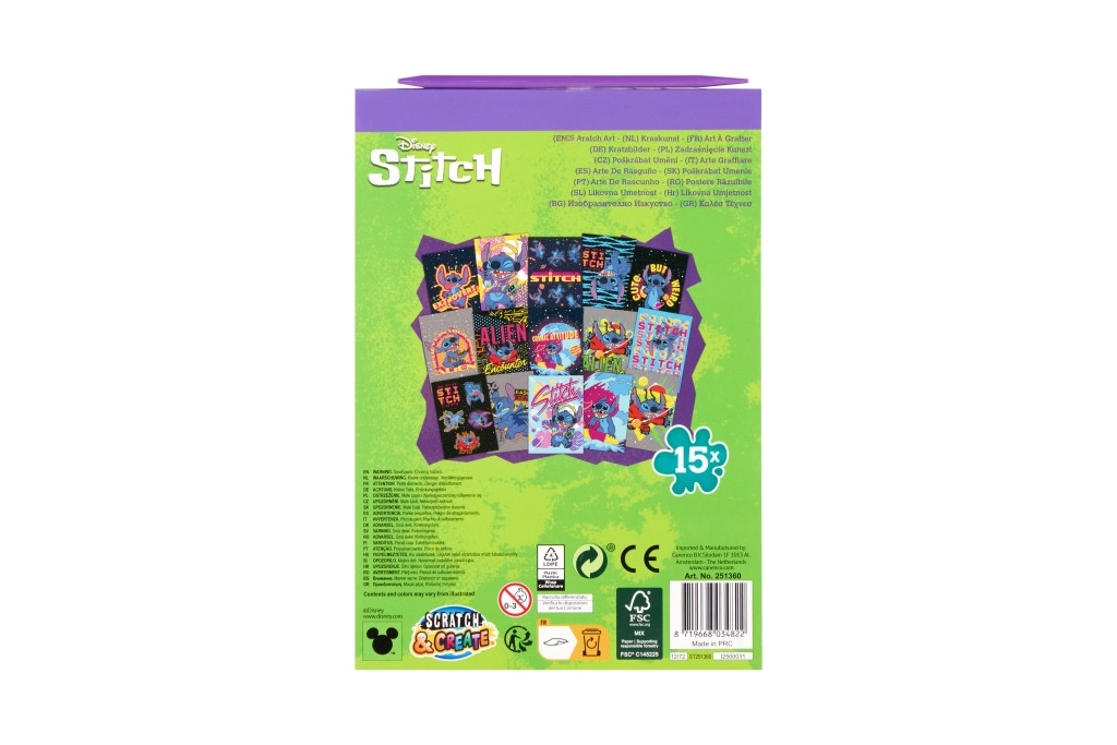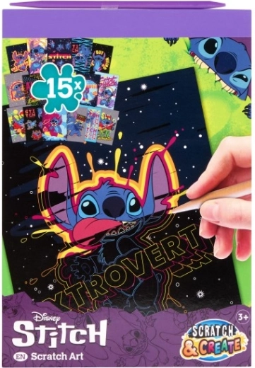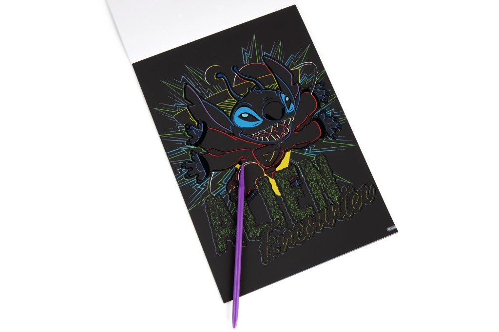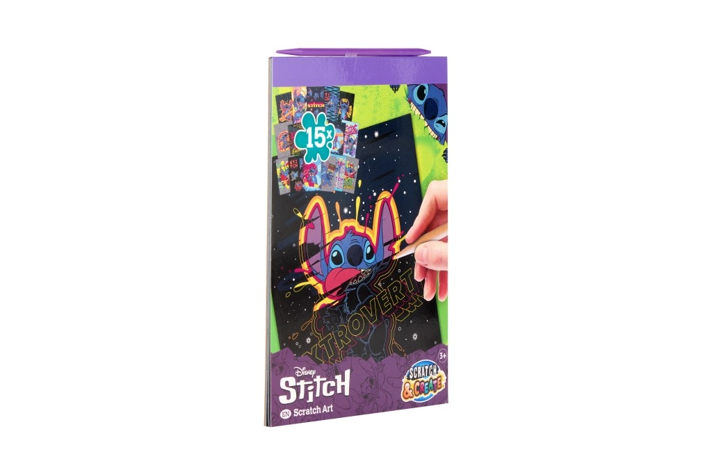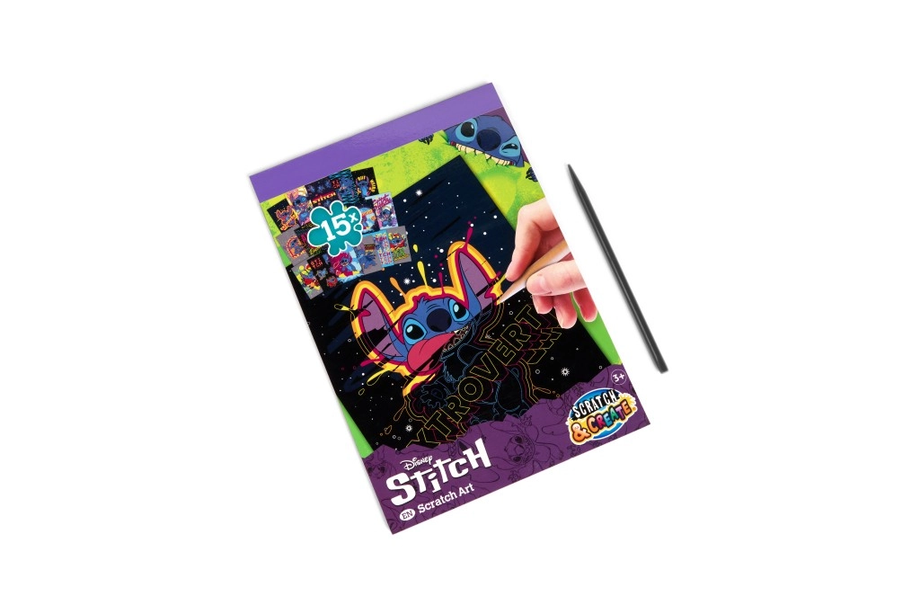 Ontdek de magie van krasafbeeldingen met DISNEY STITCH-motieven in een handig A5-formaat. Op elke pagina zit een kleurrijke ondergrond verborgen die kinderen met de kraspen geleidelijk onthullen om zo indrukwekkende illustraties van hun favoriete figuurtje te creëren.