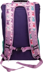 Ergonomisch gevormde rug in combinatie met gewatteerde, in lengte verstelbare schouderbanden en een verstelbare borstband bieden comfort, zelfs bij volledige belasting. Twee zijvakken van mesh zijn ideaal voor een fles, terwijl het voorvak en het platte vak op de klep snelle toegang bieden tot kleine spullen. Reflecterende elementen verhogen de zichtbaarheid van kinderen in de schemering en bij verminderd zicht.