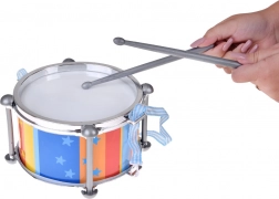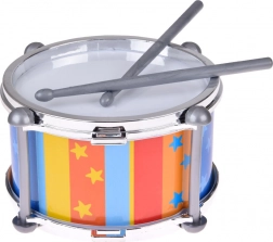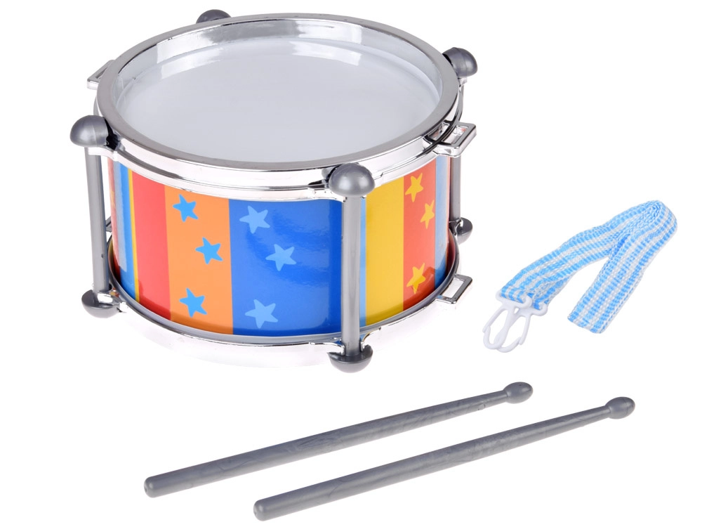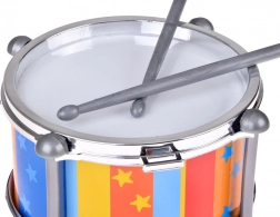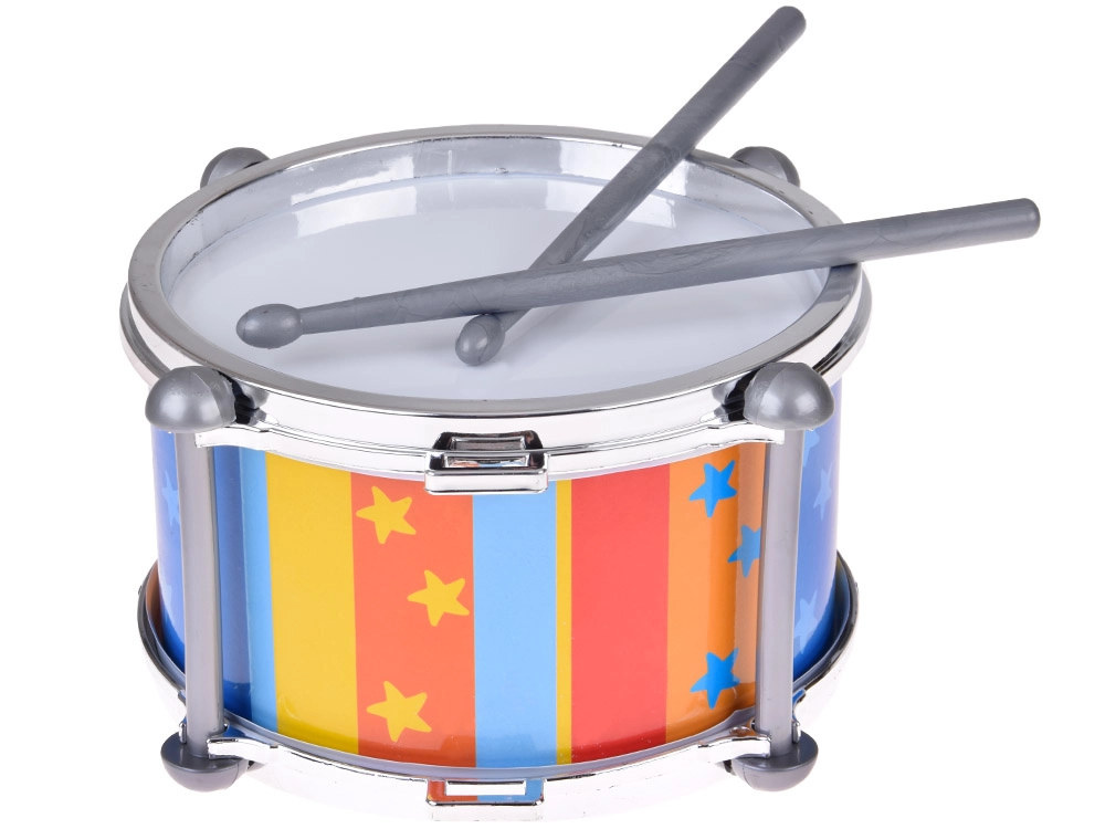 Kleurrijke verticale strepen met sterretjes en metalen-look randen maken van de drum een aantrekkelijke speelgoeddrom en een leuk cadeau. Drummen ontwikkelt de fijne motoriek, oog-handcoördinatie, het gehoor en het natuurlijke muzikaal gevoel.