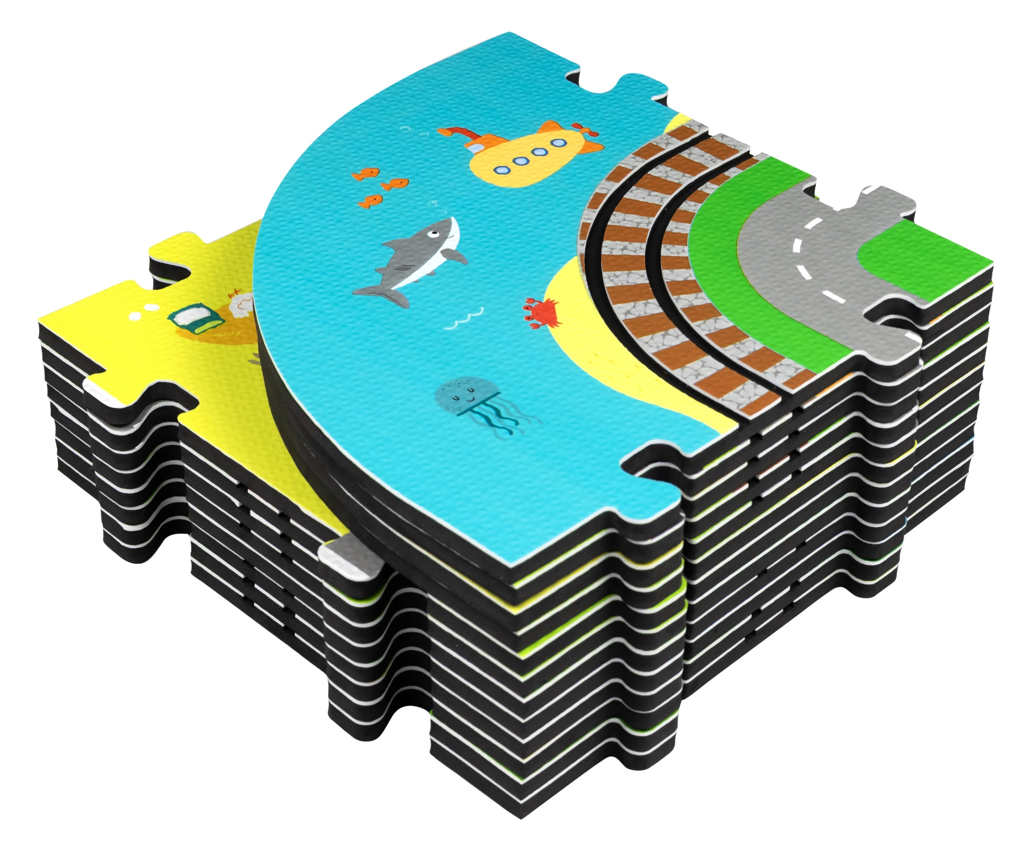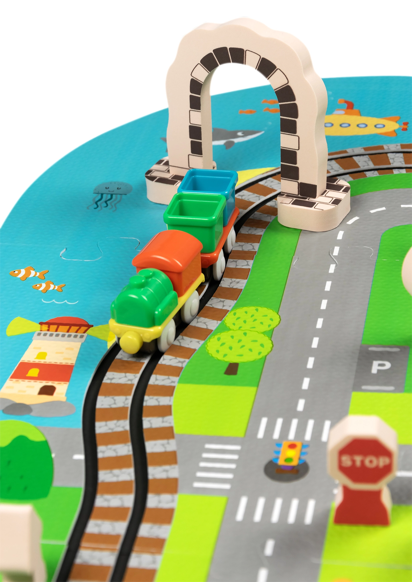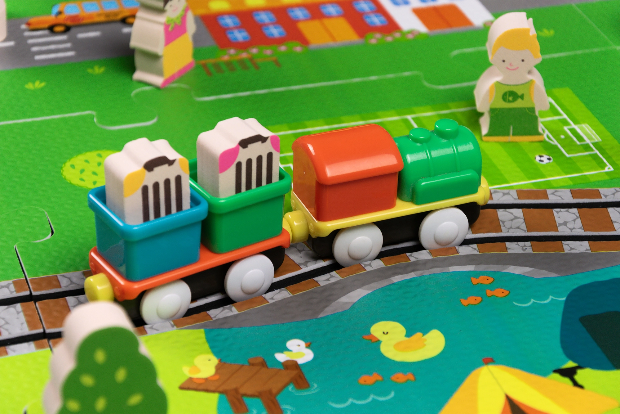 Verbind de stukken als een puzzel en maak je eigen stad met straten, spoorbanen, gebouwen en natuur. Dikke EVA-delen behouden hun vorm en zijn gemakkelijk schoon te maken.