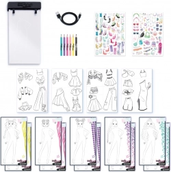 Deze stijlvolle set is ideaal voor jonge modeliefhebbers die willen ontwerpen als echte designers. De verlichte lichtplaat maakt het overtrekken en laagjes aanbrengen van sjablonen gemakkelijk, zodat prachtige en strakke ontwerpen in een handomdraai ontstaan. Dankzij de uitgebreide inhoud kun je verschillende silhouetten, accessoires en kleuren combineren en zo unieke collecties creëren.