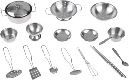 In de verpakking vind je een vergiet, pan met deksel, steelpan, kommen, bordjes, bestek en keukengerei – allemaal van duurzaam roestvrij staal.