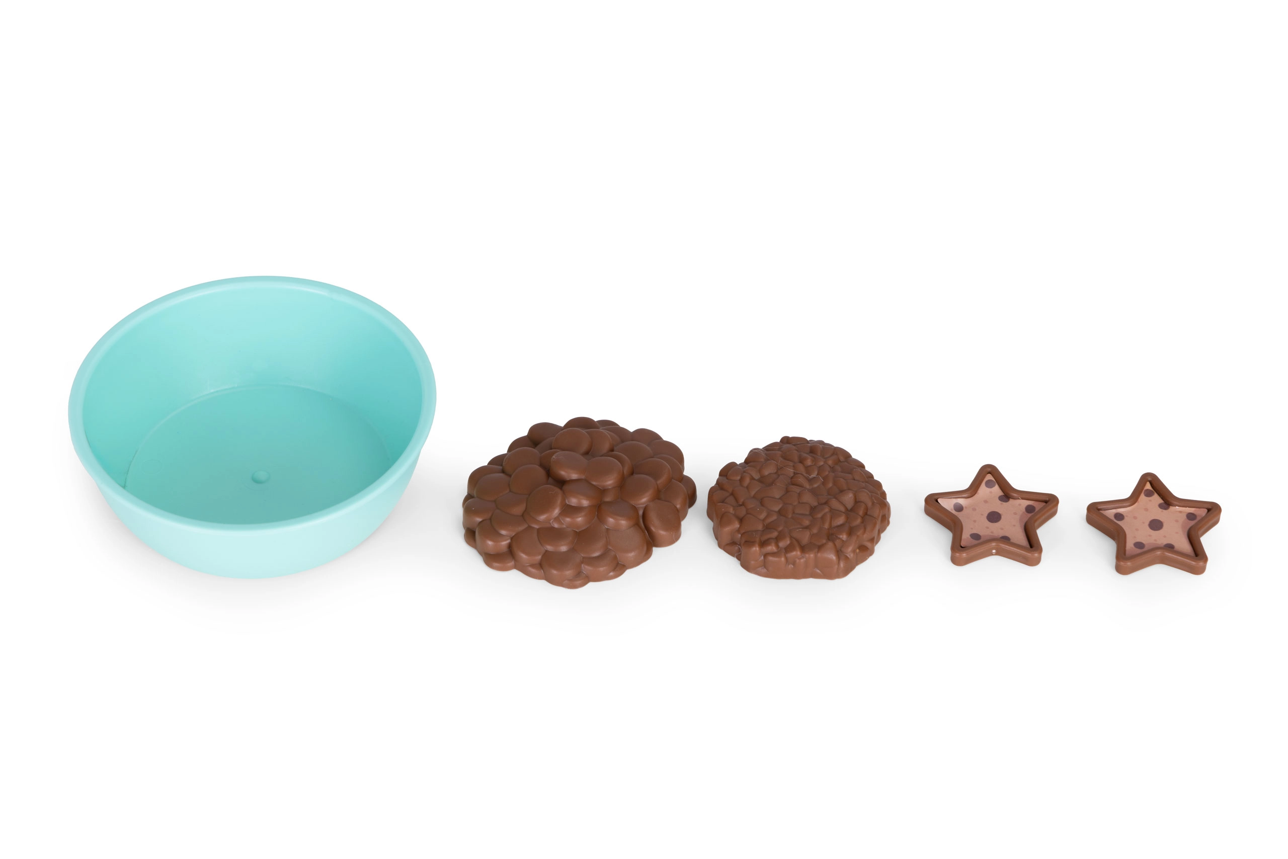 Inclusief bakje en snacks om voerspelletjes na te bootsen – ter ondersteuning van empathie, verzorgingsrituelen en verbeelding.