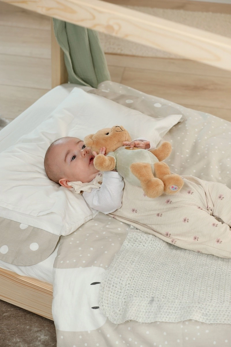 De pluchen teddybeer BABY born Teddy is ontworpen voor de kleinste handjes – licht, zacht en heerlijk knuffelbaar. Dankzij het compacte formaat van 26 cm kunnen kinderen hem gemakkelijk vastpakken en vasthouden bij het inslapen en overdag. Harmonieuze pasteltinten werken rustgevend en passen prachtig in de kinderkamer.