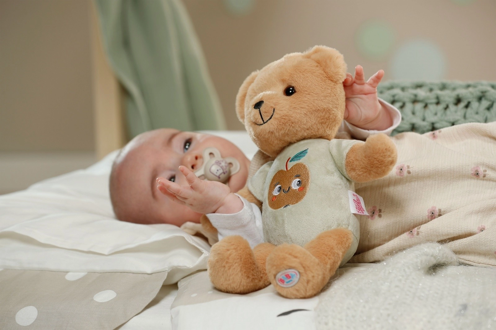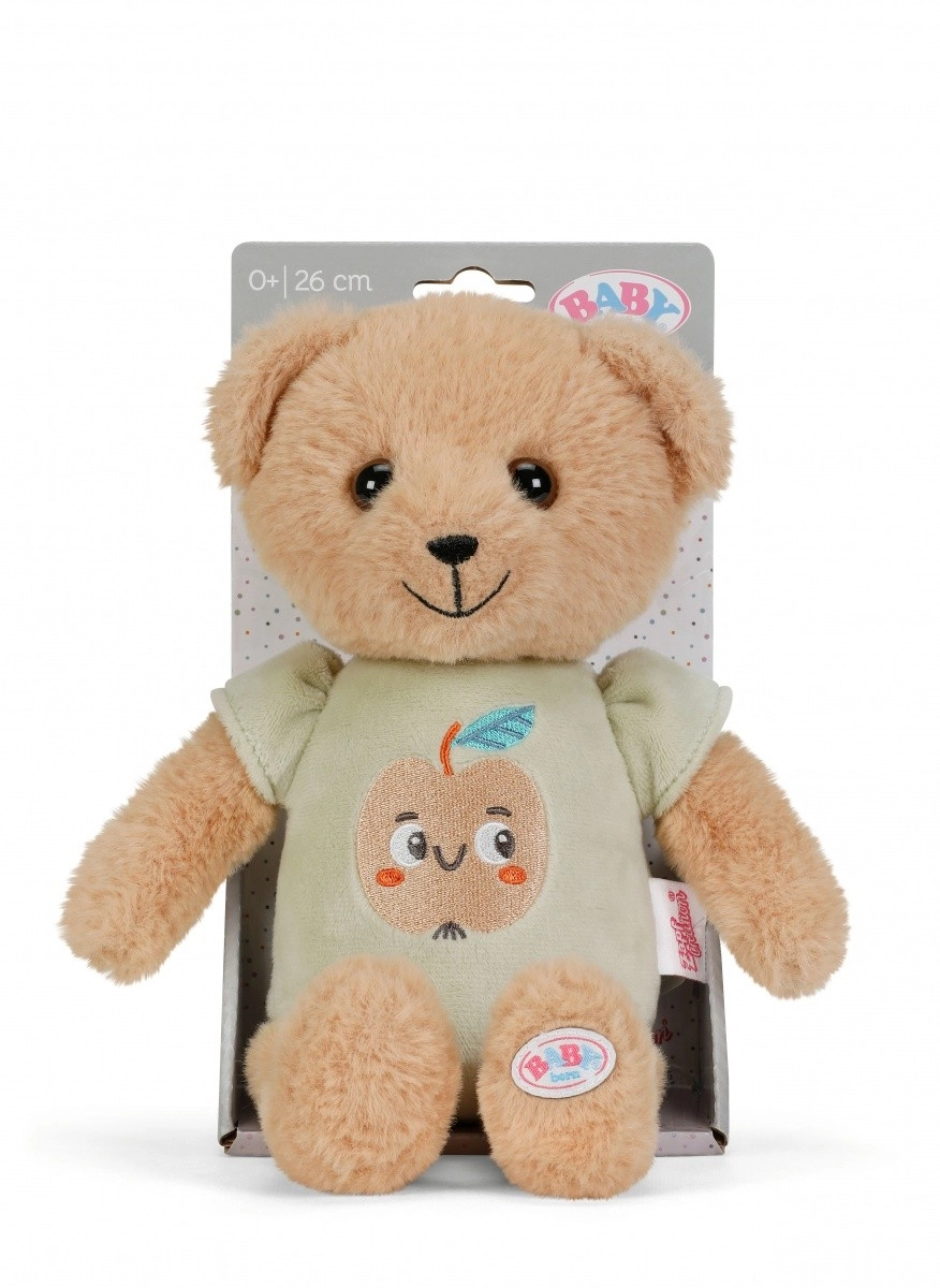 Schattige pluchen teddybeer BABY born Teddy van 26 cm is een heerlijk zachte knuffelmaat voor de allerkleinsten vanaf de geboorte. Hij heeft zachte pastelkleuren, een aangename textiele afwerking en is wasbaar op 30 °C, zodat hij schoon en zacht blijft. Ideaal om te knuffelen, te kalmeren en voor de eerste spelletjes, met nadruk op veiligheid en kwaliteit van het merk BABY born.