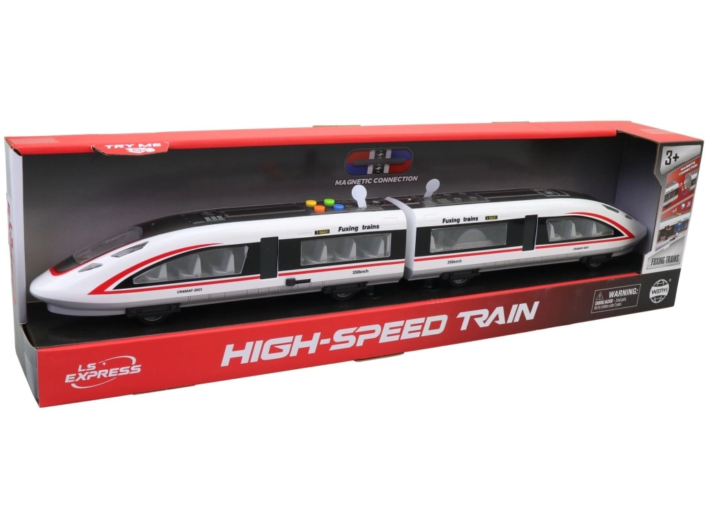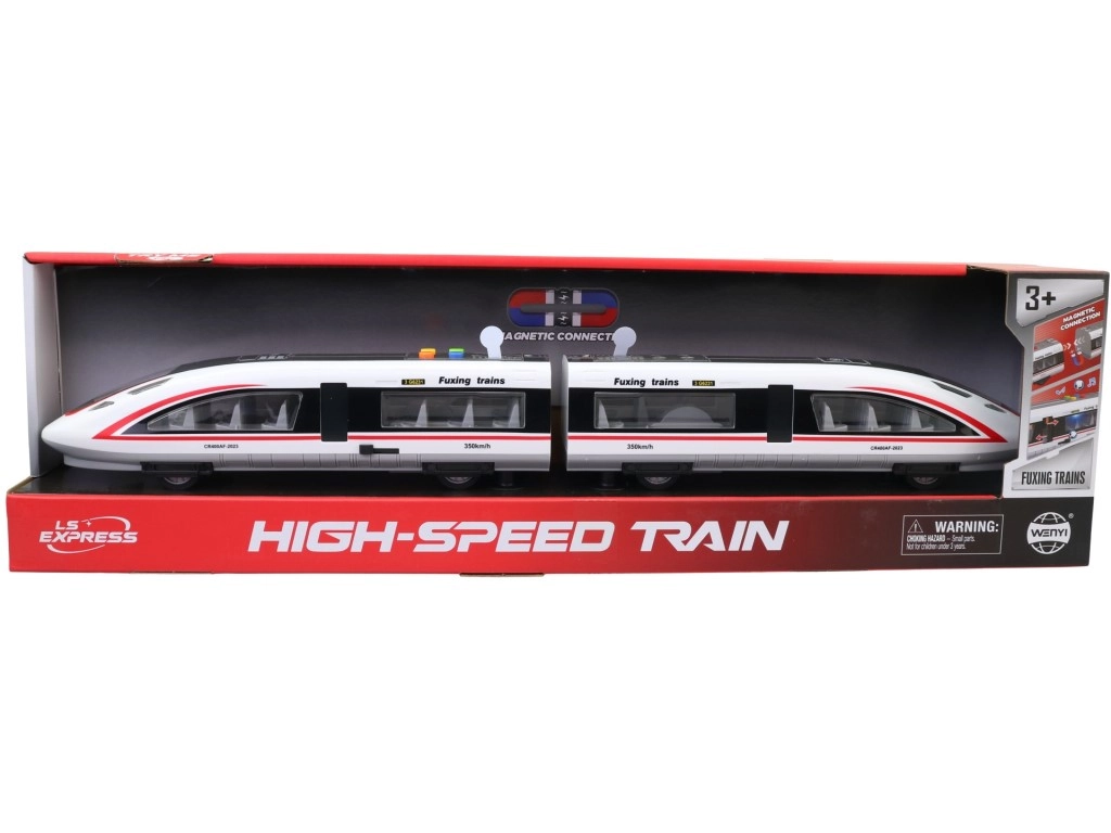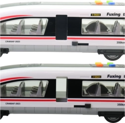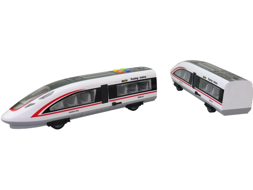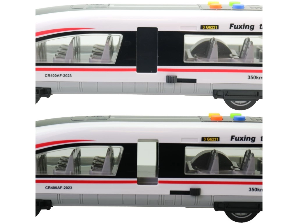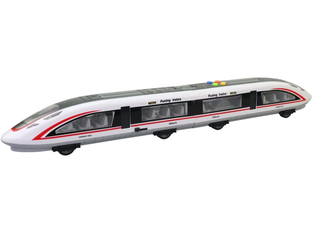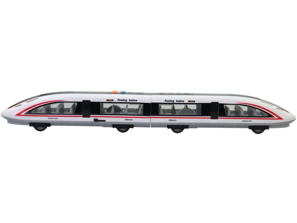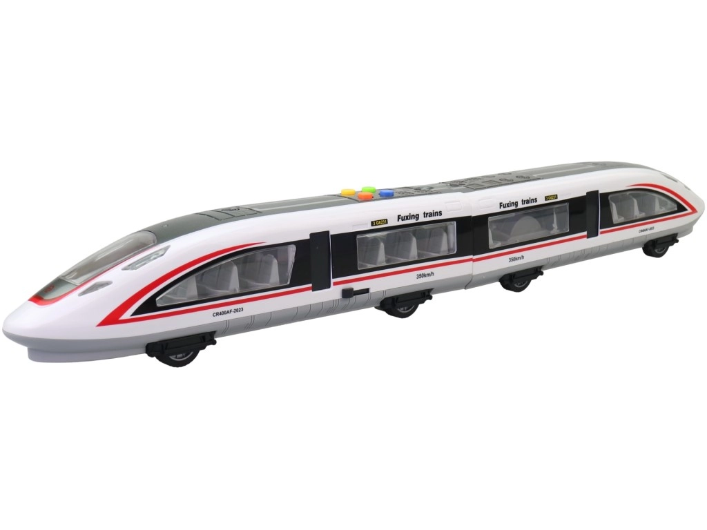 Dit kindermodel van een moderne hogesnelheidstrein biedt realistische details – transparante ramen met stoelen, deuren, aerodynamische lijnen en de snelheidsopdruk 350 km/u. Op het dak vind je kleurrijke knoppen voor het activeren van licht- en geluidseffecten, die de fantasie prikkelen en van elke rit een onvergetelijke ervaring maken.