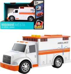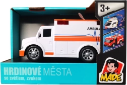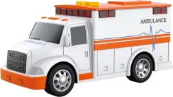 Realistische ambulance op batterijen met lichteffecten en geluiden die alle kleine hulpverleners vanaf 3 jaar zal verrassen. Hoogwaardige kunststof, compacte afmetingen en de meegeleverde AG13-batterijen zorgen voor directe en interactieve speelpraat, die fijne motoriek en verbeeldingskracht stimuleert.