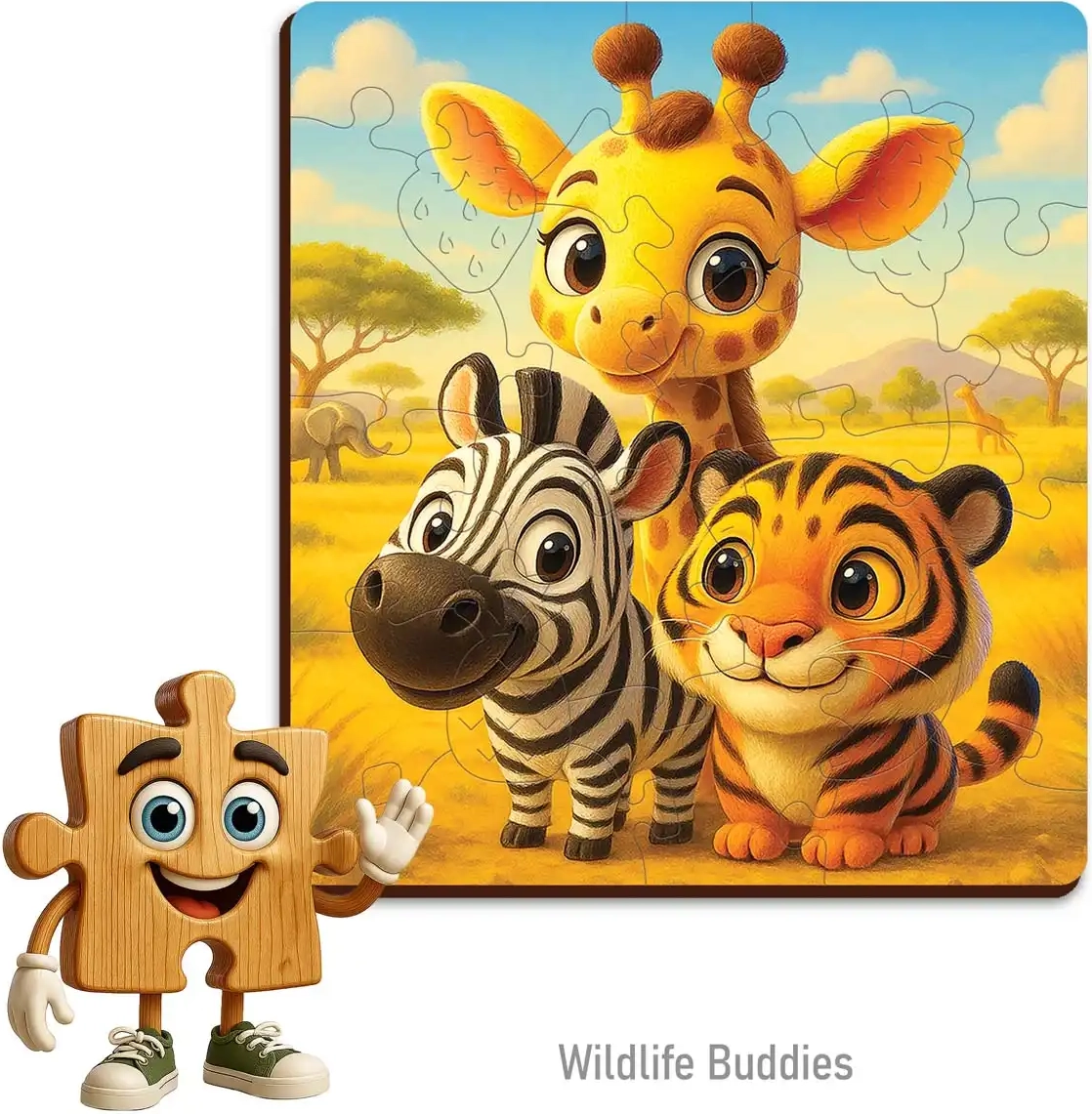 De houten puzzel Vrienden van WOODEN CITY brengt kinderen plezier bij het puzzelen en ondersteunt de ontwikkeling van de fijne motoriek. Elk stukje is met buitengewone precisie en zorg gemaakt voor een perfect passend geheel. Laserbewerking zorgt voor schone en gladde randen, waardoor de stukjes prettig aanvoelen en veilig zijn voor kleine handjes.