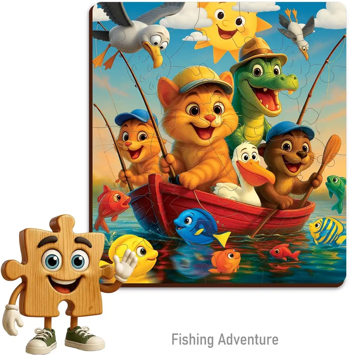De houten puzzel Vissen van WOODEN CITY is een uitstekende keuze voor de eerste puzzelervaringen en voor gezamenlijk familieplezier. Dankzij het kwaliteitsvolle hout en de zorgvuldige afwerking ontstaat een betoverende scène met een vissersthema, die kinderen op een natuurlijke manier motiveert om herhaaldelijk te puzzelen.