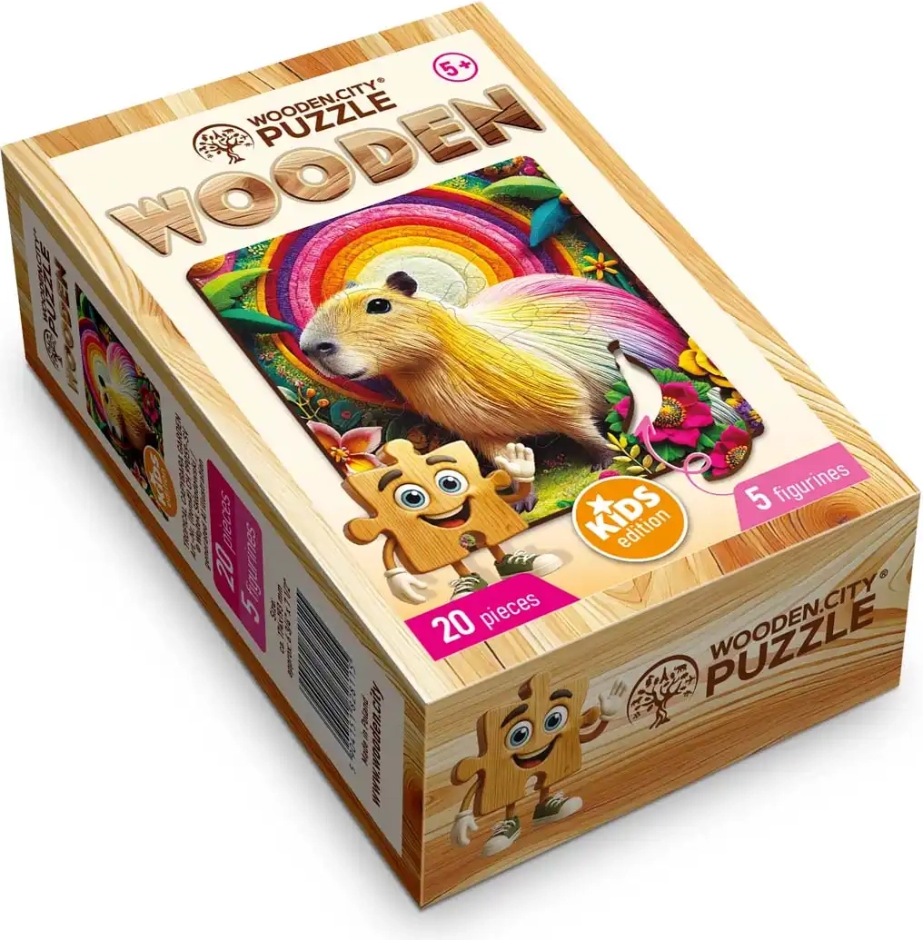 Deze schattige puzzel met capibara-motief geeft kinderen plezier tijdens het leggen en een gevoel van succes bij het voltooien van het plaatje. Dankzij de hoogwaardige afwerking zijn de stukjes duurzaam, precies en prettig vast te houden. Ideaal als cadeau en als eerste stap in de wereld van houten puzzels.