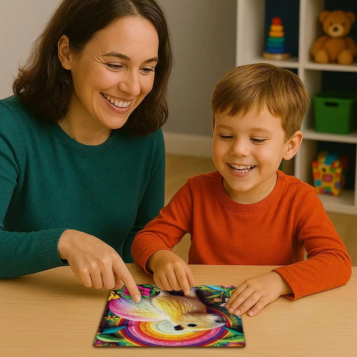Houten puzzels ontwikkelen de fijne motoriek, ruimtelijk inzicht en geduld. Het compacte formaat van het voltooide plaatje past op een plank of in een lijst, zodat je het resultaat samen met je kinderen kunt tentoonstellen.