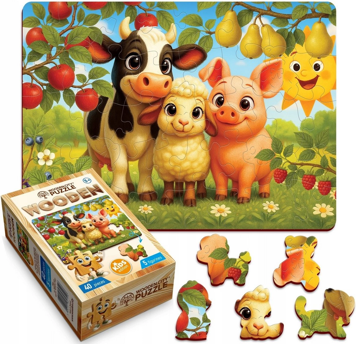 De houten puzzel van WOODEN CITY combineert plezier en leren in één. Dankzij de precieze laserbewerking hebben de stukjes perfect gladde, splintervrije randen, passen ze uitstekend in elkaar en vormen ze een kleurrijk tafereel met dieren van de boerderij. Er is ook een losse voorbeeldkaart inbegrepen voor comfortabel puzzelen.