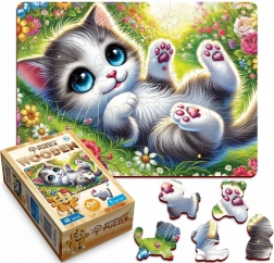 Geef kinderen een hoogwaardige houten puzzel met een betoverende afbeelding van een kitten. Dankzij de stevige stukjes en de precieze afwerking is puzzelen prettig, veilig en motiverend. De voltooide afbeelding van ongeveer 26,6 × 19,3 cm is perfect voor herhaald puzzelplezier en als decoratie op de kinderkamer.