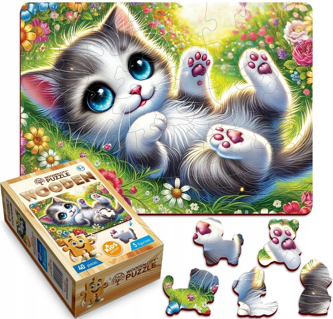Ontdek een leuke en duurzame houten puzzel met een kittenmotief die zowel kinderen als ouders zal verrukken. Bevat 40 stevige houten stukjes, 5 uniek gevormde figuurstukjes en gladde, splintervrije randen dankzij precisie-lasergesneden afwerking. De puzzel stimuleert concentratie, geduld en creativiteit en in de verpakking zit een los voorbeeldblad voor makkelijker puzzelen.