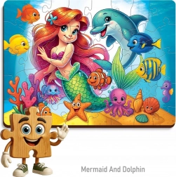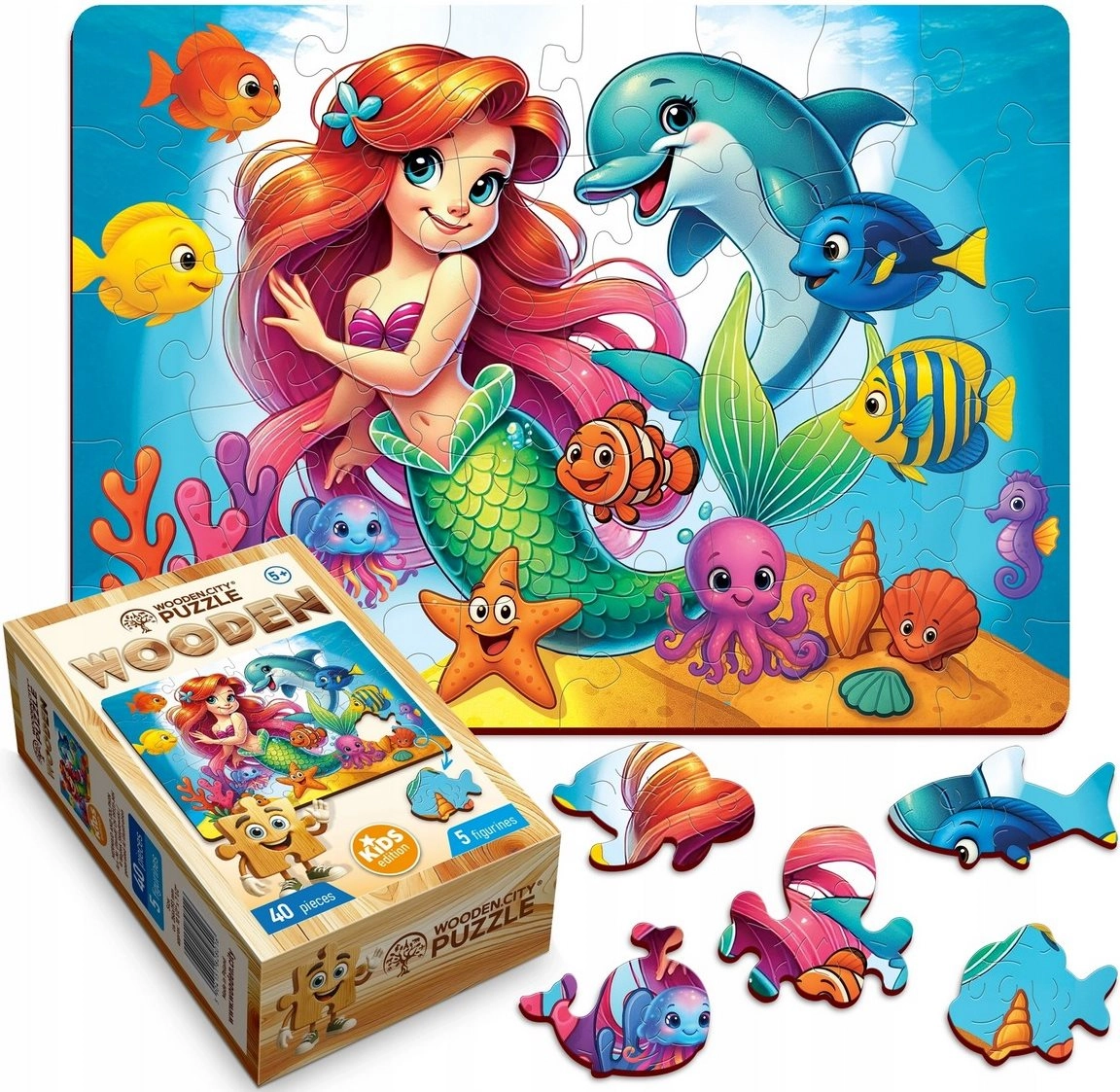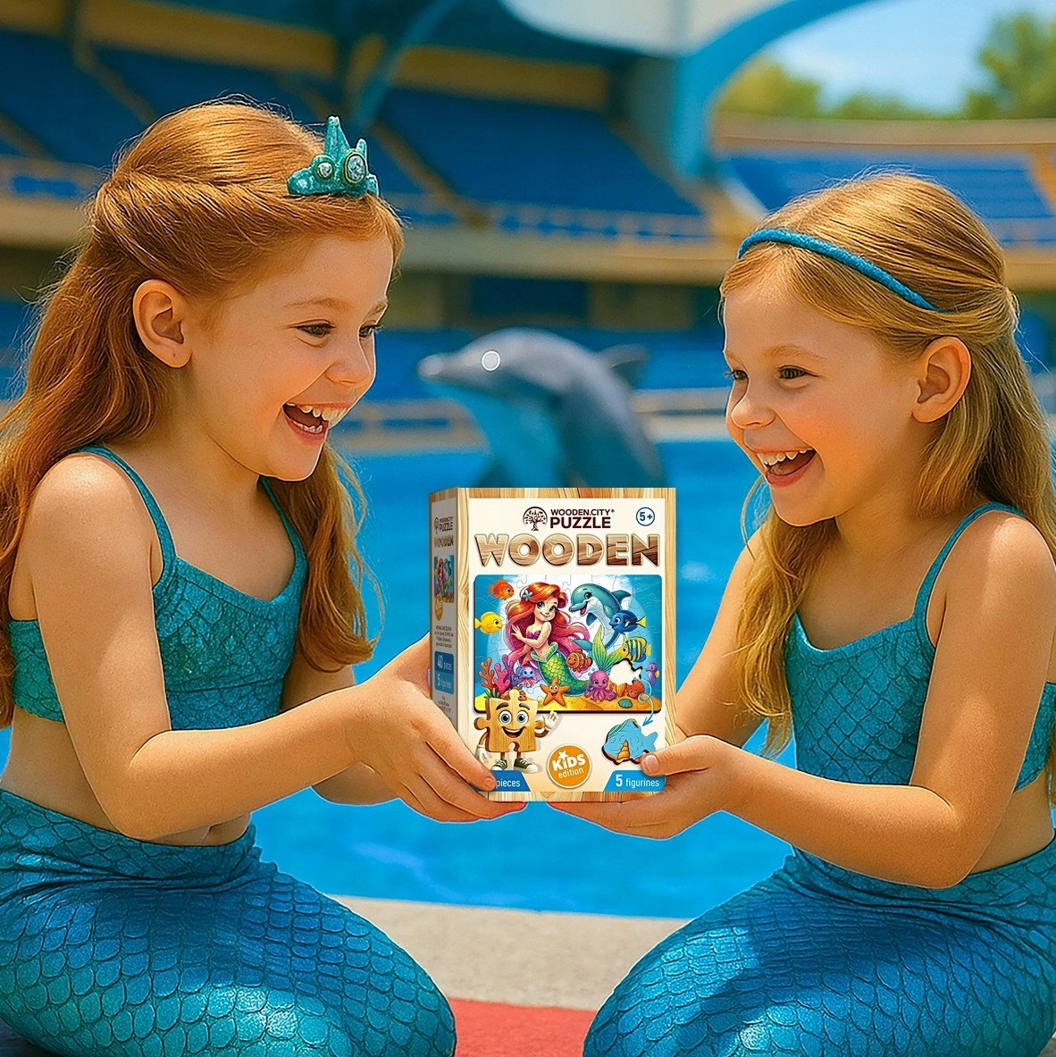 Houten puzzel zeemeermin en dolfijn 40 stukjes WOODEN CITY