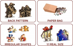 Tot wel 50 speciaal gevormde stukjes in de vorm van figuurtjes en objecten geven het puzzelen speelsheid en originaliteit. Elk stukje past precies en behoudt zijn vorm.