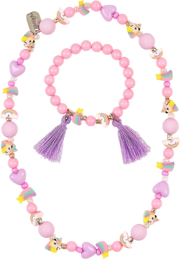 Deze betoverende sieradenset van SOUZA! maakt alle eenhoornliefhebbers blij. De kralenketting met kleine hangertjes van eenhoorns en regenbogen wordt aangevuld met een flexibele armband in dezelfde stijl. Gladde kralen en zachte kleuren zorgen voor comfortabel dragen en een prachtige uitstraling bij elke gelegenheid.