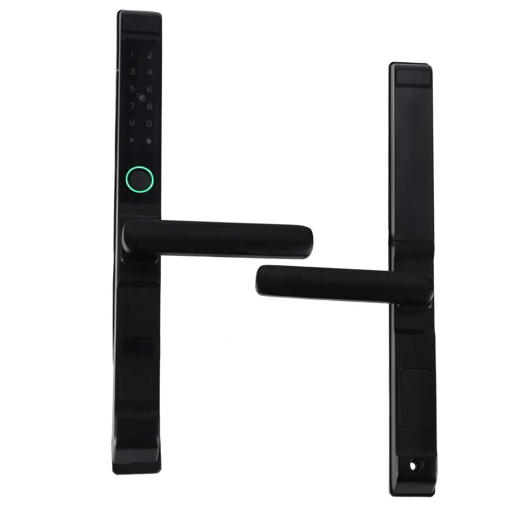 Modern slim deurslot met touch-toetsenbord, vingerafdruksensor en ondersteuning voor MIFARE-kaarten, met sleutelloze toegang, bediening via mobiele app en Wi‑Fi/Bluetooth-connectiviteit. Dankzij meerdere ontgrendelmethoden, een alarm bij foutieve code en de mogelijkheid om willekeurige cijfers vóór/na het wachtwoord in te voeren, biedt het een hoog beveiligingsniveau voor appartement- en voordeuren.