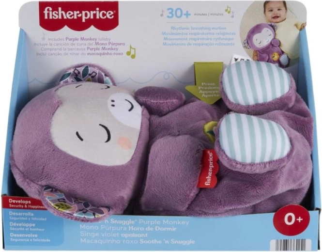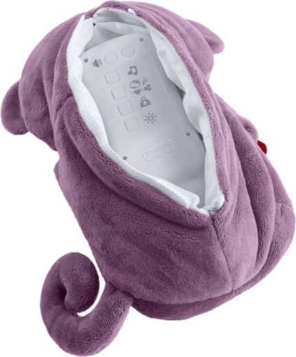 Stel je baby gerust met dit superzachte paarse aapje, dat tot 30 minuten muziek, geluiden en witte ruis biedt, een zacht lichtje en ritmische ademhalingsbewegingen voor maximale kalmte. Heeft instelbaar volume, is wasbaar na het verwijderen van de elektronica en is geschikt vanaf 0+. AA-batterijen zijn inbegrepen.