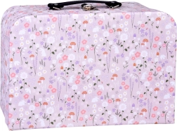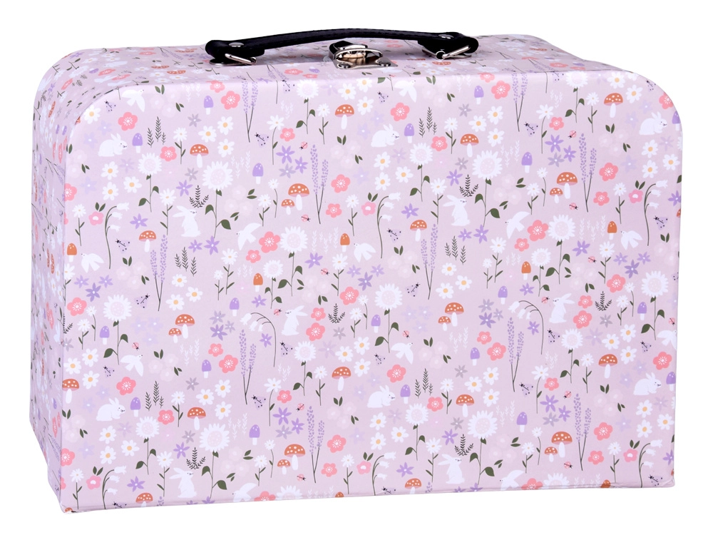 Compact koffertje met bloemenprint dat na het openen een poppenhuis met twee verdiepingen wordt. Het dient als speelgoed én praktisch opbergsysteem; alles blijft bij elkaar en is klaar voor vertrek.