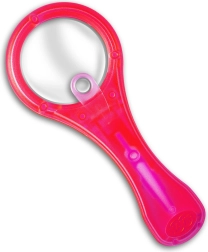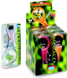 Praktische loep van milieuvriendelijk ABS-plastic met een extra, ingevoegde lens – ideaal voor kleine ontdekkers vanaf 6 jaar. Dankzij het handvat, dat opent als een kompas, kun je de loep comfortabel op tafel zetten en handsfree gebruiken. In het handvat zit bovendien een uitneembare pincet voor het makkelijk hanteren van kleine objecten. Grote lens 60 mm, kleine lens 13 mm, vergroting 3× en 7×, milieuvriendelijk materiaal, mix van kleuren.