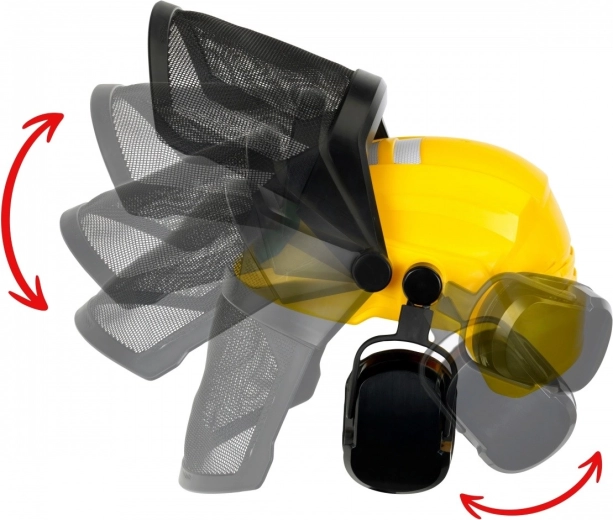 - Veiligheidsaccessoires – verstelbare helm met opklapbaar beschermvizier en gehoorbeschermers.