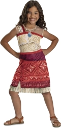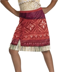 Het kostuum is ontworpen voor kinderen van 7–8 jaar (aanbevolen lengte 124–135 cm) en vangt perfect de uitstraling van de geliefde heldin uit de film Vaiana Moana 2. De asymmetrische schouderband, stamprint, gelaagde look van de rok en “gras”-afwerkingen geven de outfit een authentiek karakter.