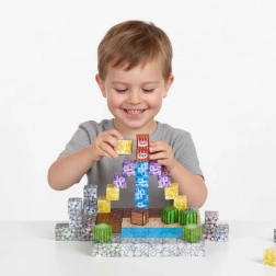 De diverse kleuren en texturen inspireren tot het maken van originele scènes, torens en 3D-constructies. Ideaal voor de ontwikkeling van ruimtelijk denken en fantasie.