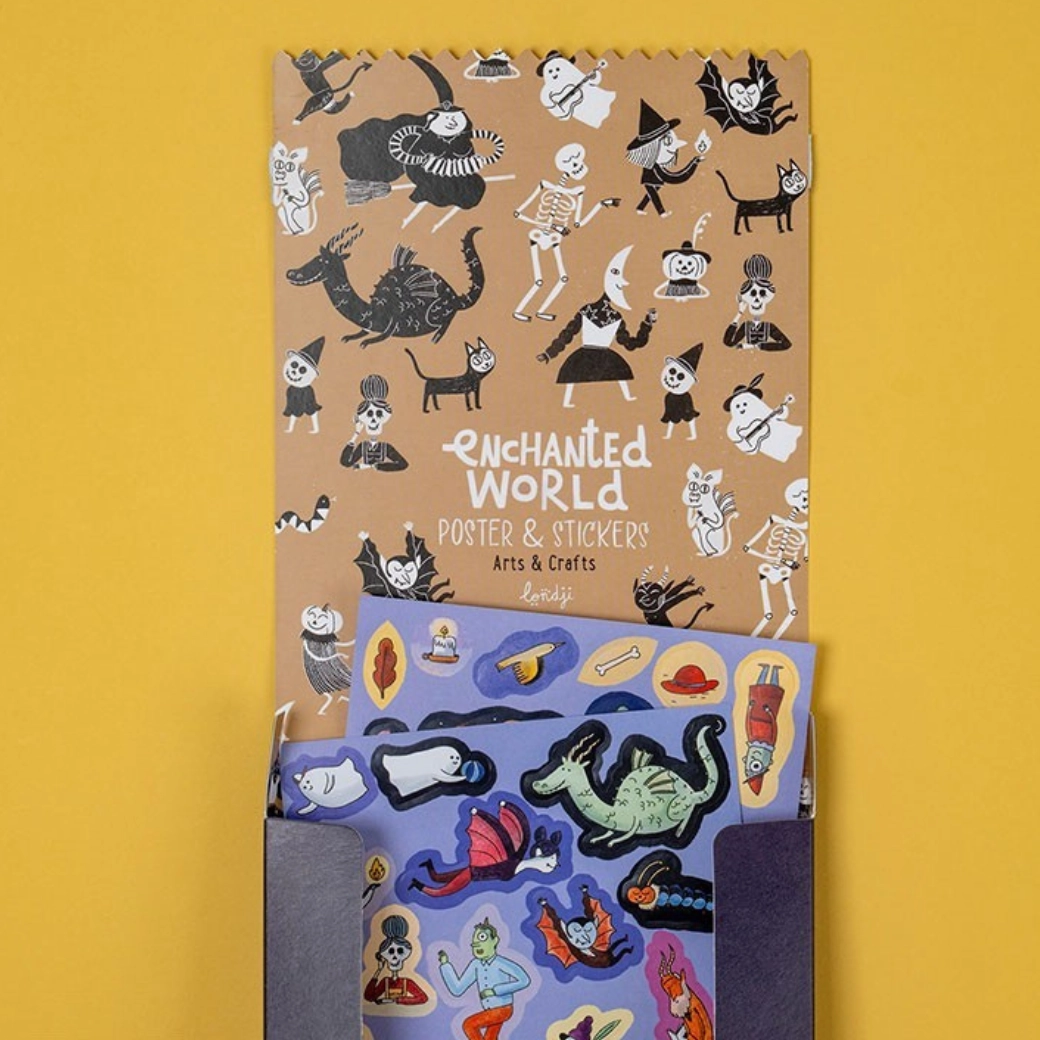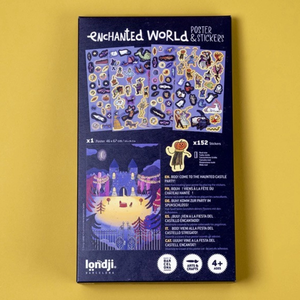 De lichten gaan aan in de ramen, schaduwen dansen en uit de diepten van het kasteel klinkt mysterieuze muziek… Met deze creatieve set brengen kinderen het spookkasteel tot leven met hun eigen verbeelding. De grootformaatposter dient als decor, die je aanvult met tientallen thematische stickers – geesten, ramen, vleermuizen, personages en geheime hoekjes.