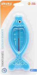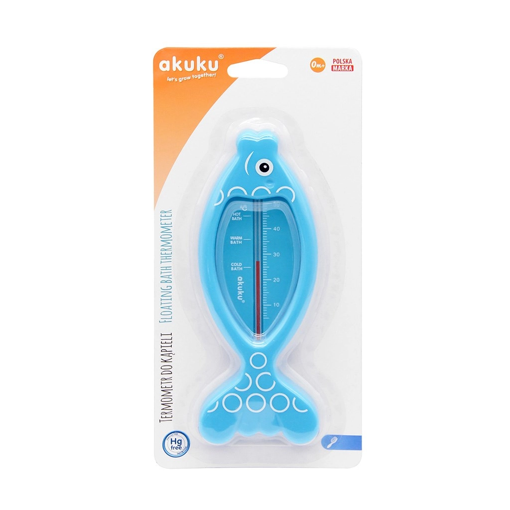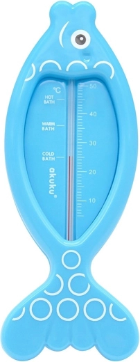 Praktische drijvende badthermometer van het merk Akuku in de vorm van een vis, meet nauwkeurig de watertemperatuur voor veilig baden van je baby. Bevat geen kwik en dankzij de goed leesbare schaal bepaal je eenvoudig de ideale temperatuur. De drijvende constructie zorgt voor comfortabel gebruik en het veilige materiaal is geschikt voor kinderen.