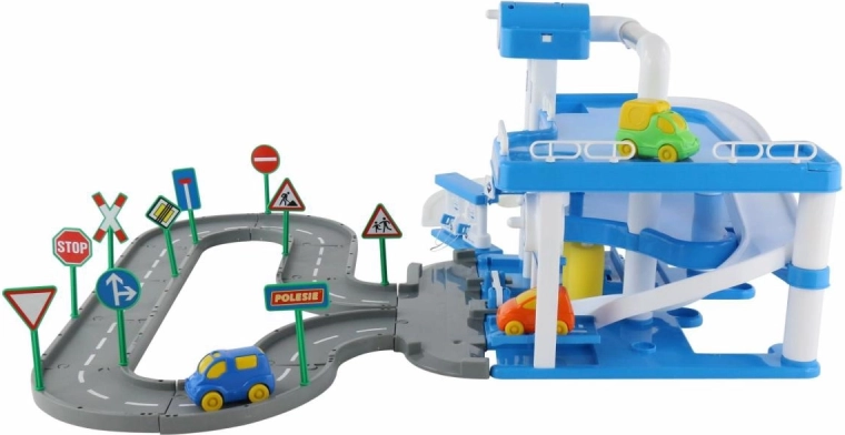 De set is klaar voor direct speelplezier – in de verpakking zitten 3 autootjes van ongeveer 9 cm lang, stickers voor een realistische afwerking en borden voor veilig verkeer in de garage. Het product komt uit de lijn Wader Quality Toys, bekend om kwaliteit en duurzaamheid.