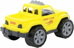 De gele kunststof auto Legion is een uitstekende keuze voor kleine bestuurders. Dankzij de vrijlopende wielen en de stevige uitvoering beleven kinderen veel plezier, zowel binnen als buiten. De open laadbak biedt ruimte voor het vervoeren van klein speelgoed, terwijl de robuuste look met gedetailleerde elementen creatief en actief spel stimuleert.