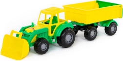 Geef kinderen ruimte voor fantasie met deze plastic tractor met voorlader en aanhanger. Dankzij de robuuste uitvoering is hij geschikt voor de kinderkamer, de tuin en de zandbak. Grote wielen bieden stabiliteit en gemakkelijke bediening, terwijl de werkende bak en kiepaanhanger het spel een realistisch tintje geven.