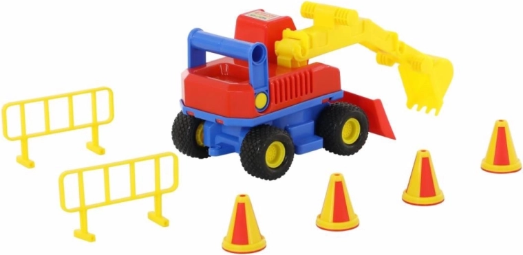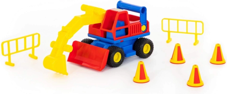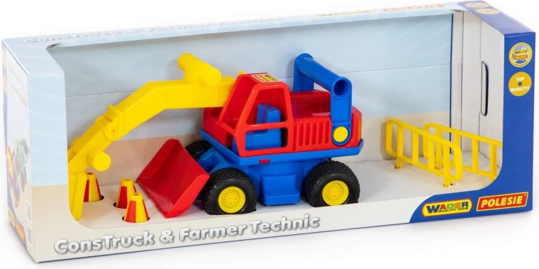 Ontdek de robuuste ConsTruck graafmachine voor kinderen van het merk WADER – een kleurrijk bouwvoertuig met rubberen banden, volledig beweegbare onderdelen en de mogelijkheid tot mechanische bediening. In de verpakking zitten 4 pionnen en 2 verkeersbarrières voor realistisch bouwspel vanaf 1 jaar.