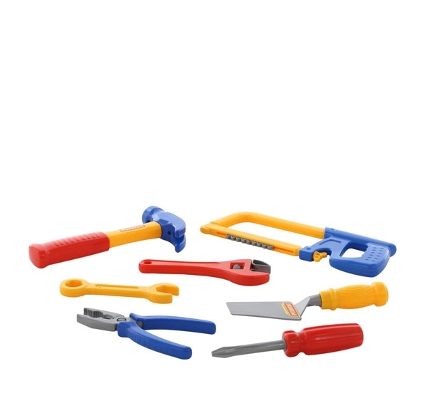 Een praktische set kindergereedschap met 7 onderdelen die kleine klussers zal verrassen en hun fantasie en vaardigheid stimuleert. Bevat een zaag van 27 cm met beweegbare tanden, een hamer van 21 cm en andere gereedschappen voor veilig speelplezier. Kleuruitvoering kan variëren afhankelijk van de actuele voorraadbeschikbaarheid.