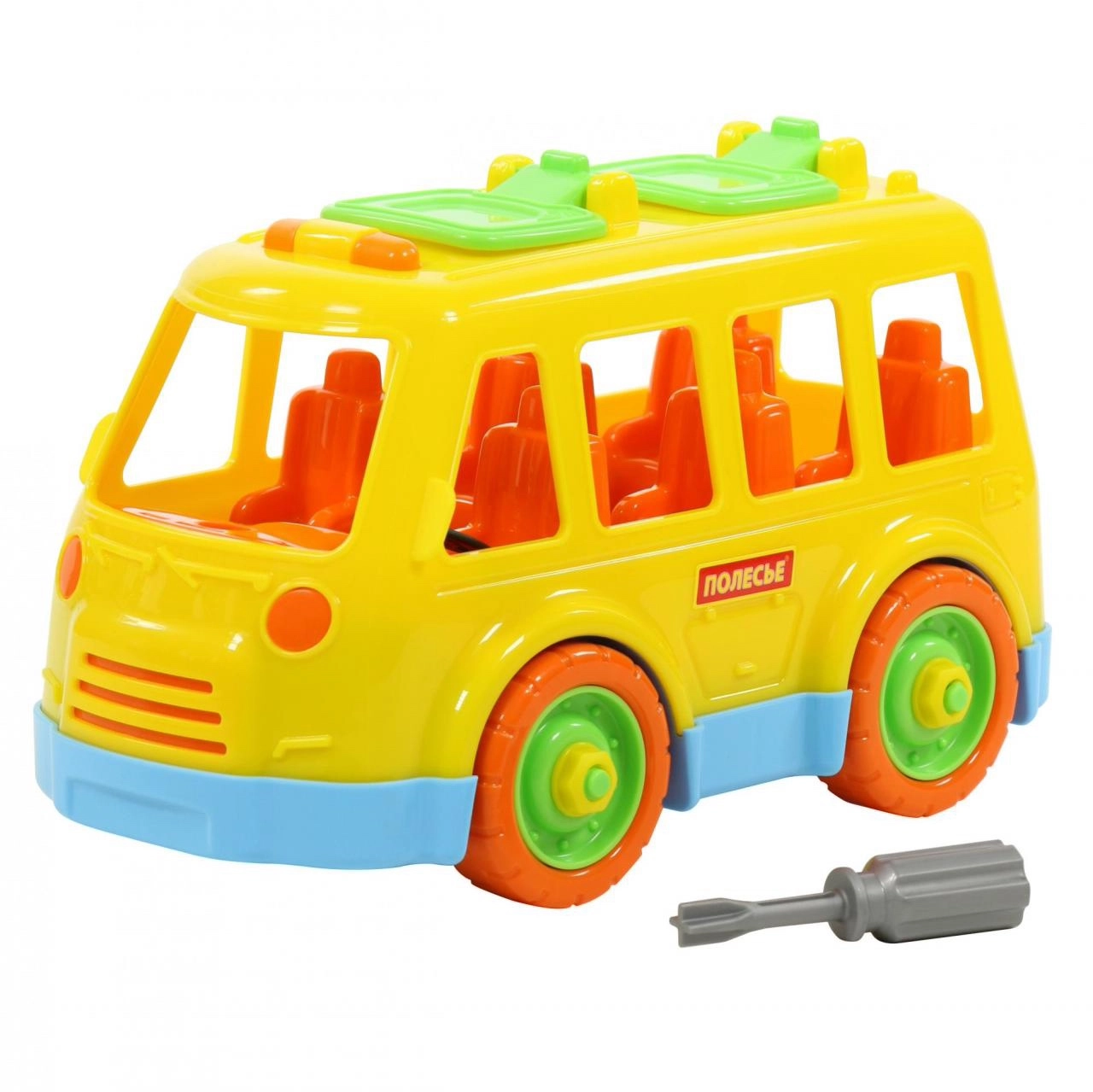 Leuke en leerzame schroefbare bus met een lengte van 27 cm zonder aandrijving, ideaal voor kinderen vanaf 3 jaar. Met de meegeleverde schroevendraaier kan de kleine monteur de bus uit elkaar halen en weer in elkaar zetten. Het speelgoed is van boven gemiddelde kwaliteit. Kleuren kunnen variëren afhankelijk van de actuele beschikbaarheid.