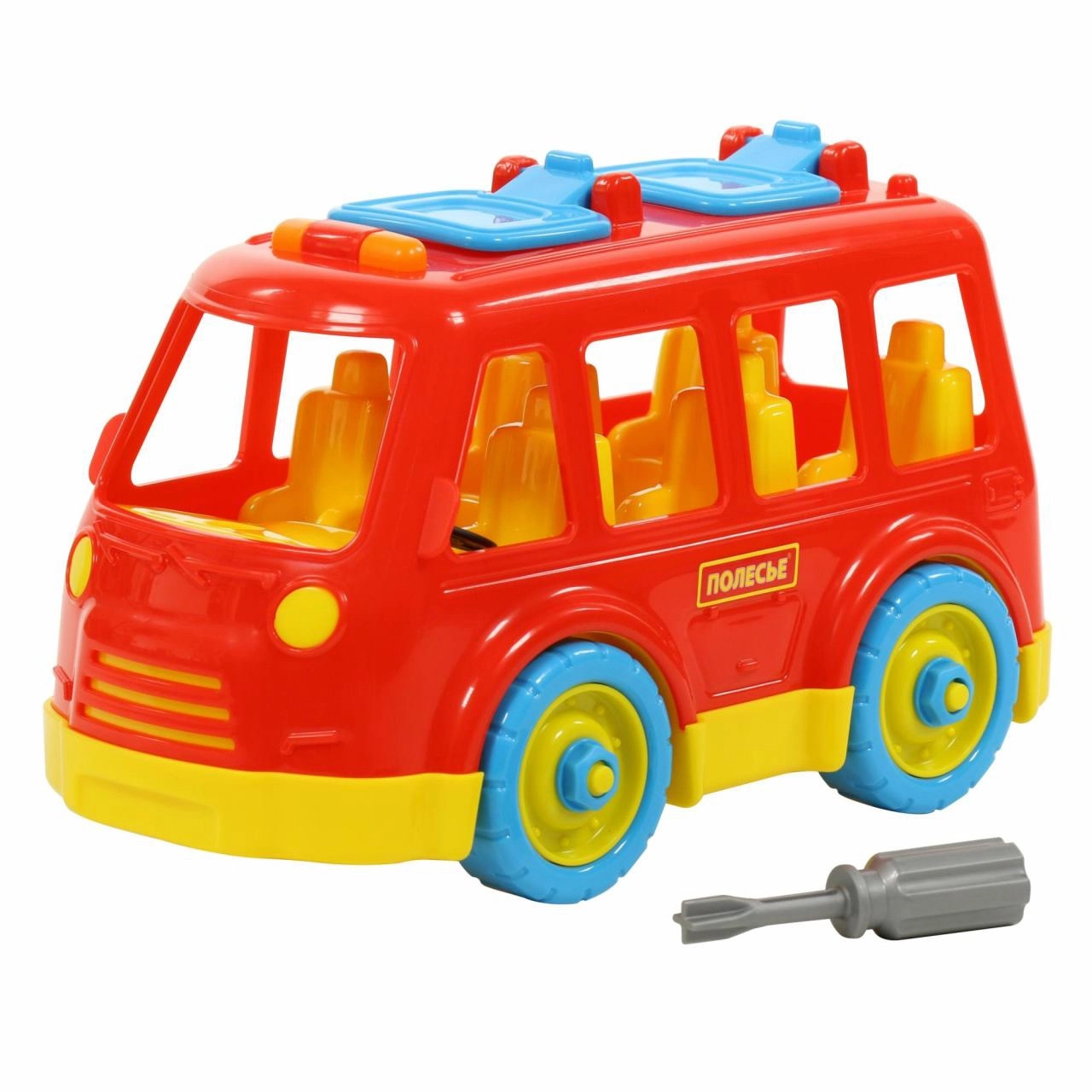 De verpakking bevat een praktische schroevendraaier, waarmee de bus eenvoudig uit elkaar gehaald en weer in elkaar gezet kan worden. Het speelgoed heeft geen aandrijving, is veilig en gemaakt van kwaliteitsmaterialen voor een lange levensduur en veilig spel.