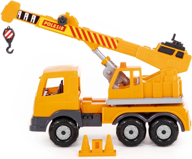 De kunststof kraan Polesie Auto Prestige is een uitstekende keuze voor kleine bouwers. Dankzij de draaibare giek en de telescopische arm kunnen kinderen realistisch met ladingen werken, de fijne motoriek trainen en de verbeelding prikkelen. De werkende lier maakt het gemakkelijk om lasten te heffen en te laten zakken.