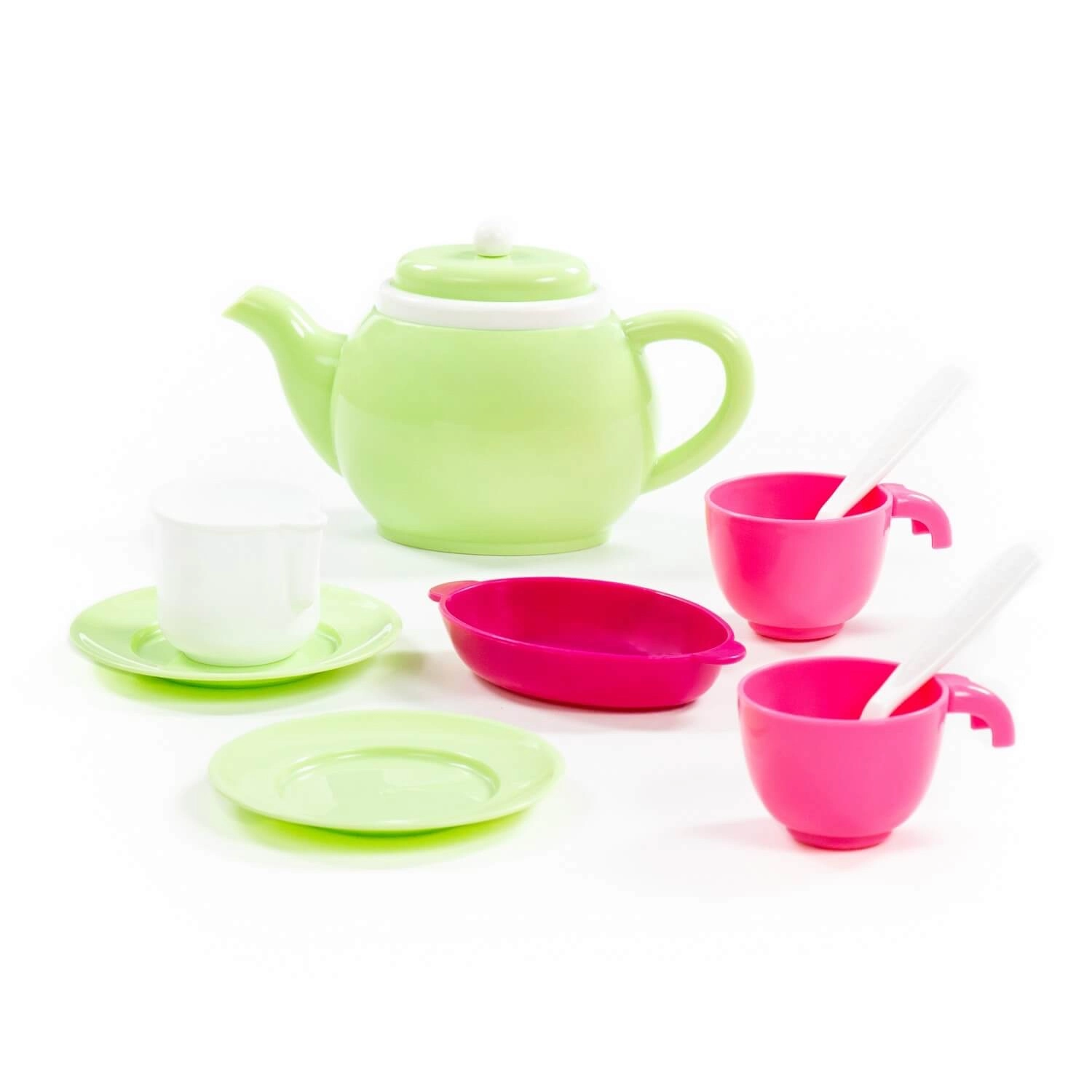 Schattig kinder theeservies voor 2 personen met 10 delen, ideaal voor theekransje-rollenspel. Lichte en stevige onderdelen met gemakkelijke grip stimuleren rollenspel, ontwikkelen de fijne motoriek en de verbeelding van kinderen.