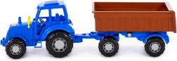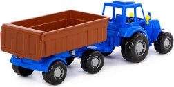 Robuuste kindertractor met aanhanger voor heerlijk boerderijspel. In de cabine is plaats voor een bestuurder, de wielen zijn gemonteerd op stevige metalen assen en de set is gemaakt van hoogwaardige en duurzame materialen. Onderdeel is een afkoppelbare aanhanger voor het vervoeren van kleine ladingen.