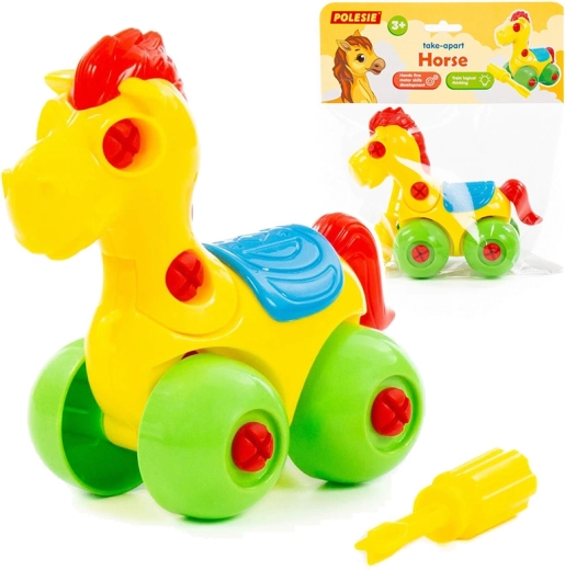 Deze kleurrijke schroefbare pony op wieltjes is een uitstekende keuze voor kinderen die graag ontdekken hoe dingen werken. Met de meegeleverde schroevendraaier kunnen de onderdelen eenvoudig worden gedemonteerd en weer gemonteerd, wat geduld en handvaardigheid ontwikkelt.