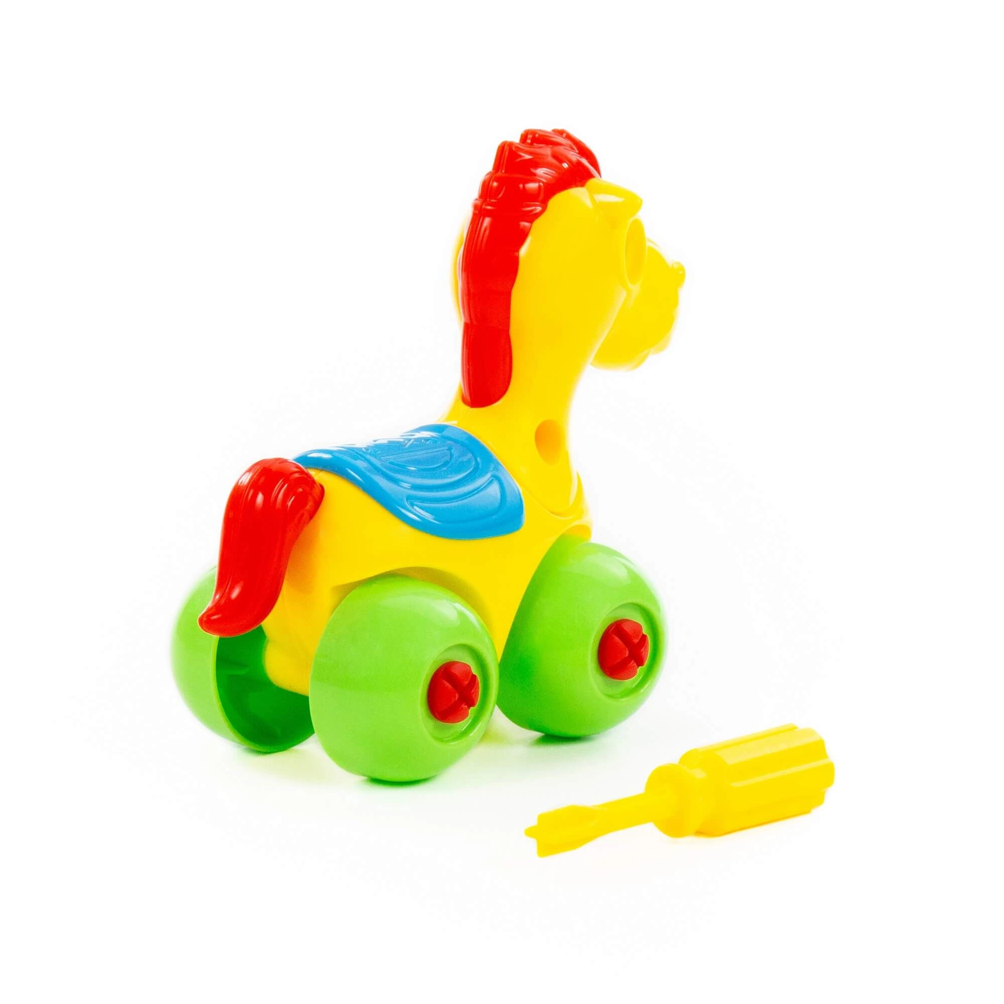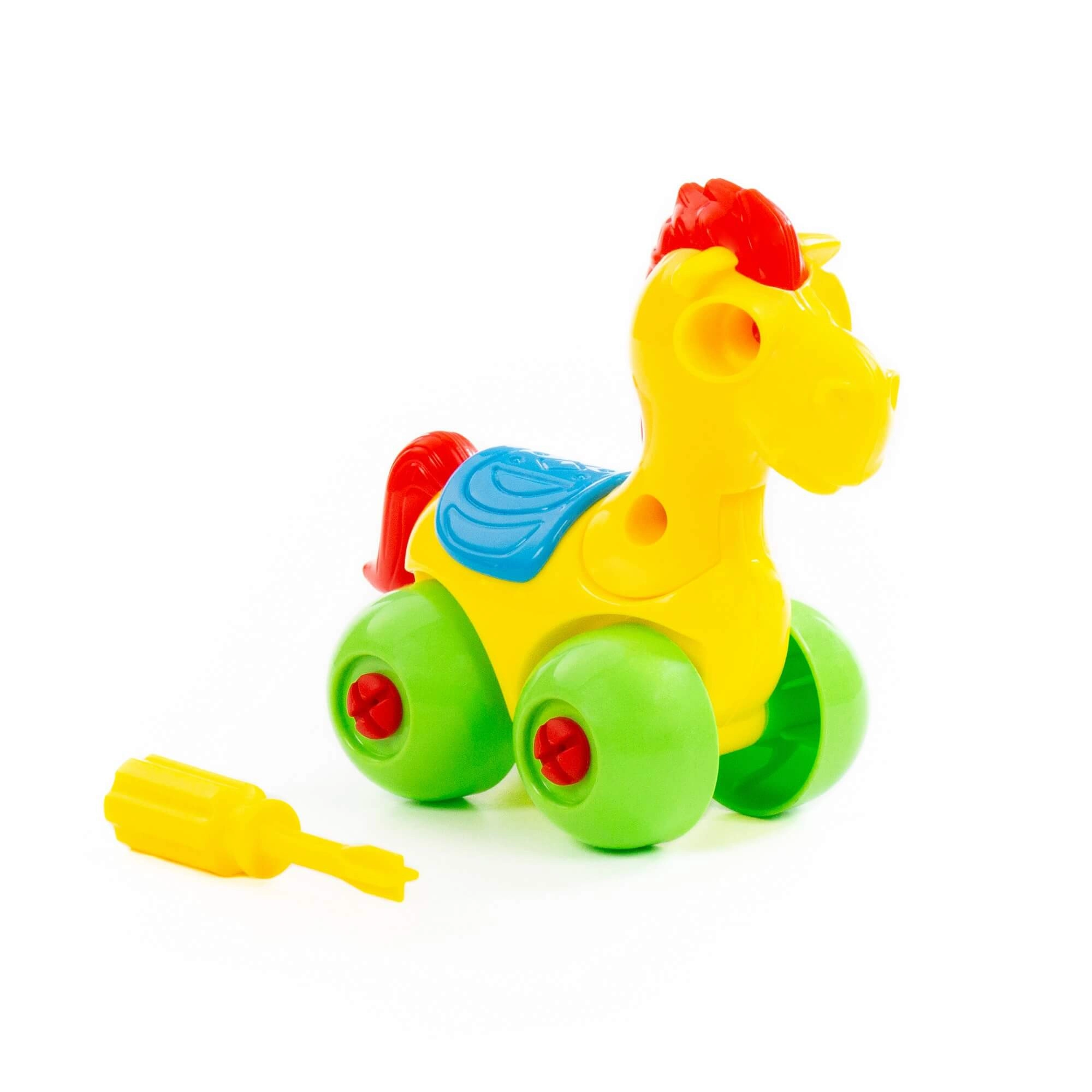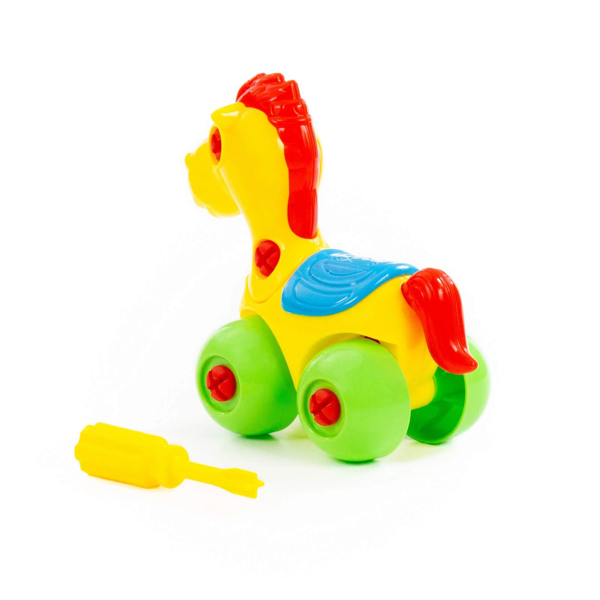 - Schroefbaar montagespeelgoed – pony op wieltjes
