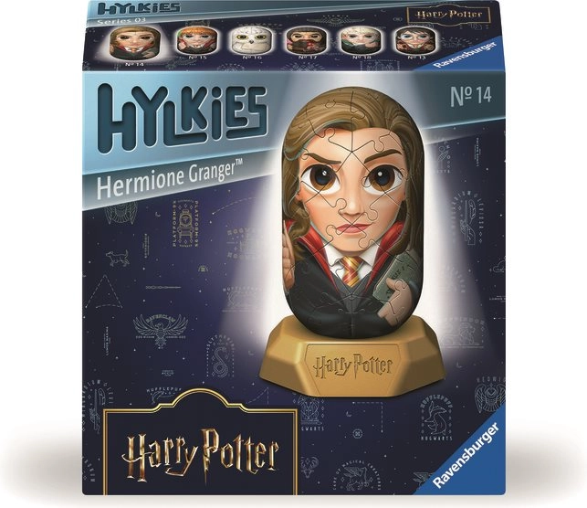 De Hylkies-collectie biedt in totaal 6 populaire personages: Harry Potter, Hermelien Griffel, Ron Wemel, Hedwig, Hagrid en Draco Malfidus. Puzzel ze allemaal en geniet van groot verzamelplezier in een klein formaat.