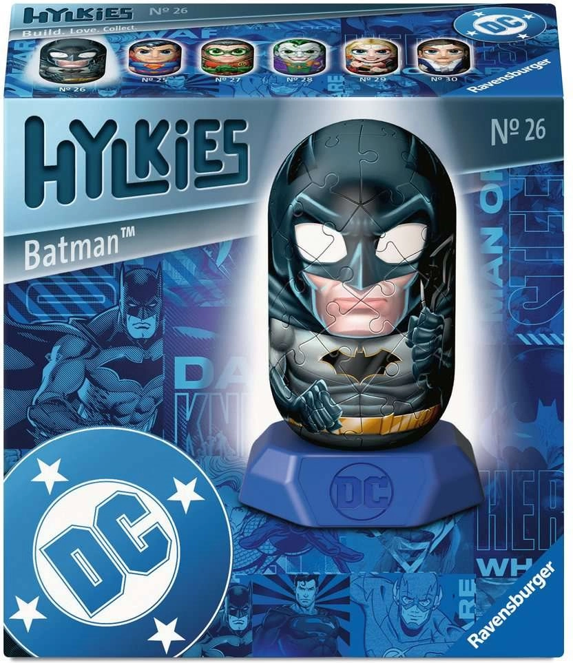 Ontdek de wereld van Hylkies – verzamelbare figuren van 3D-puzzels. Deze editie met het motief van de legendarische superheld BATMAN biedt een compact model dat na het bouwen elke DC-fan zijn plank zal sieren.