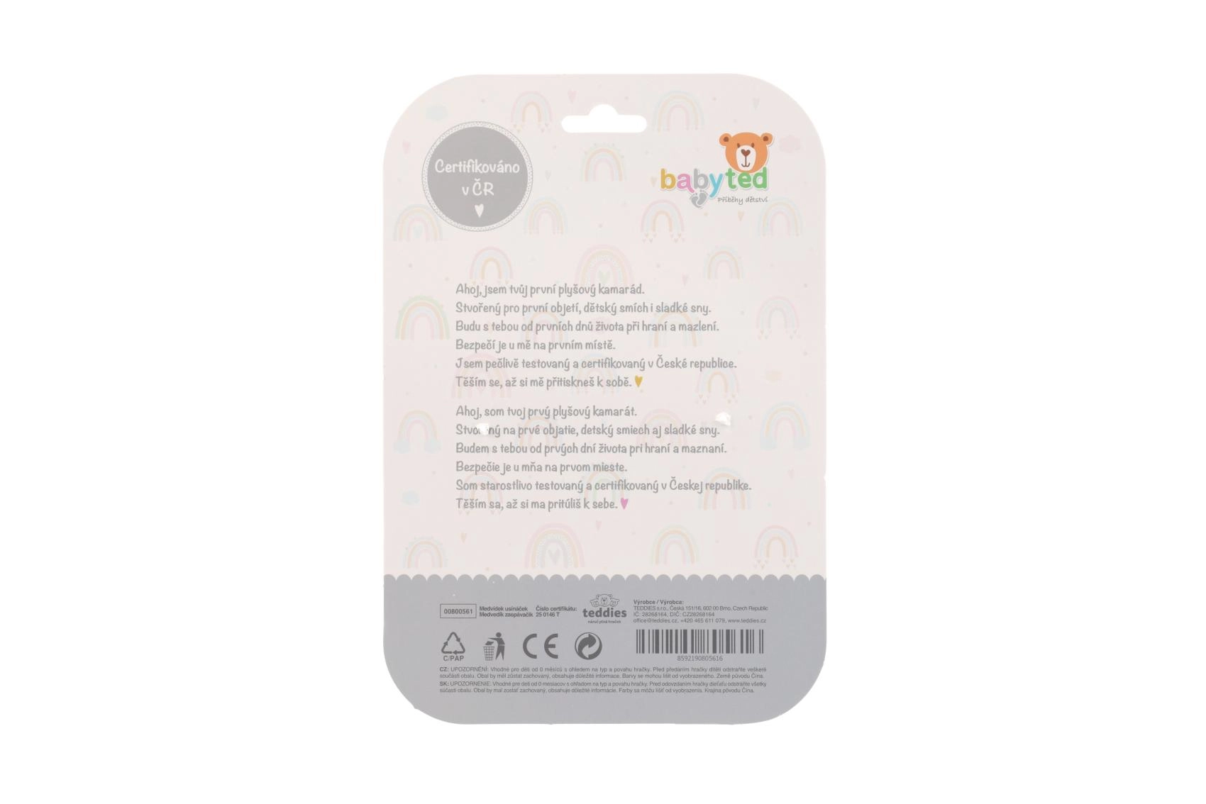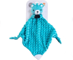 Dit pluche knuffeldoekje van BABYTED is ontworpen voor baby’s vanaf de geboorte. De ultra zachte minky stof met reliëfstipjes is aangenaam om aan te raken en helpt door zijn kalmerende karakter bij een betere slaap. Het geïntegreerde rammelaartje in het berenhoofdje klinkt zacht en trekt op natuurlijke wijze de aandacht van je kind.