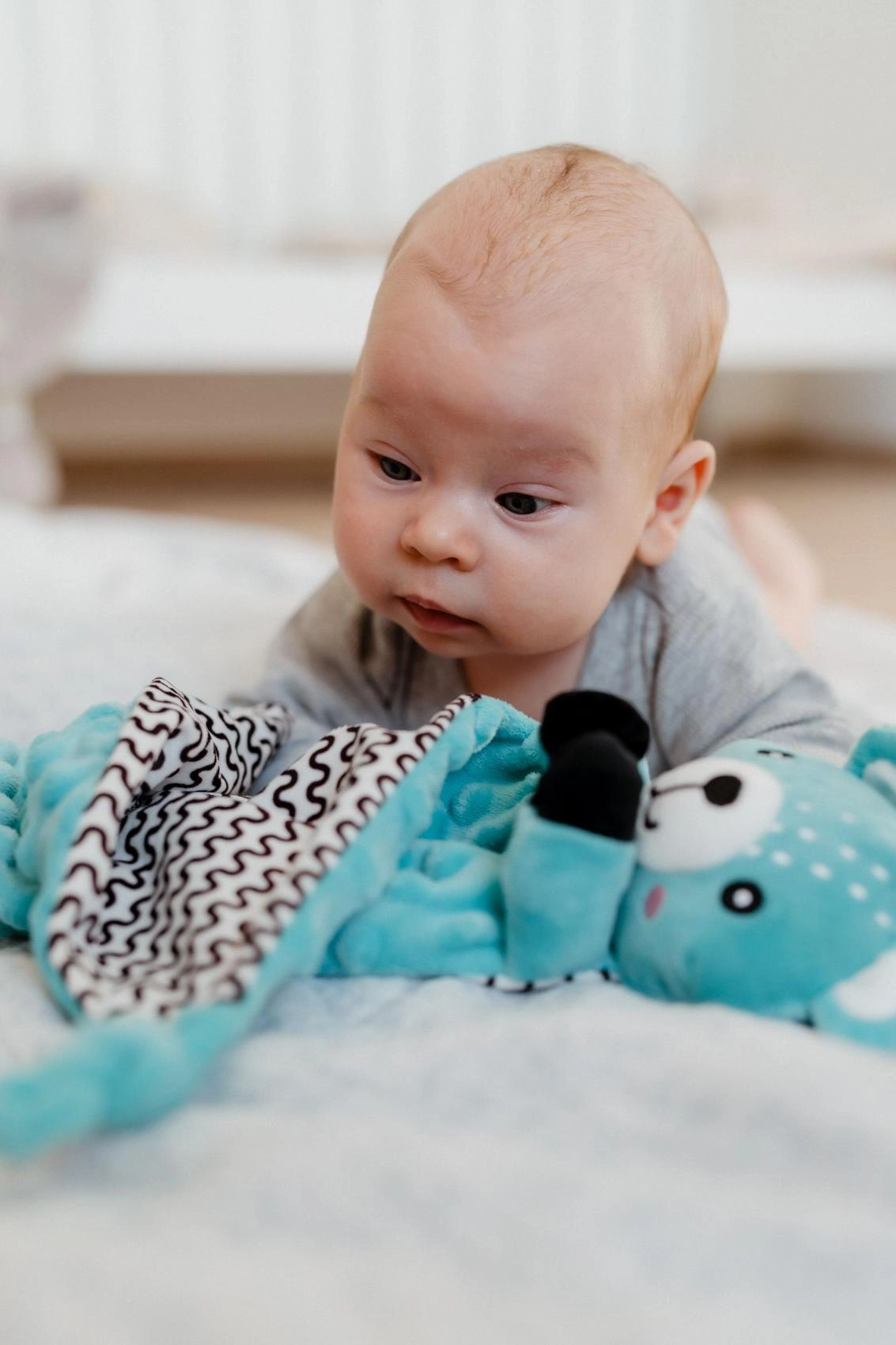 - Zachte minky stof met 3D-stipjes voor tactiele stimulatie