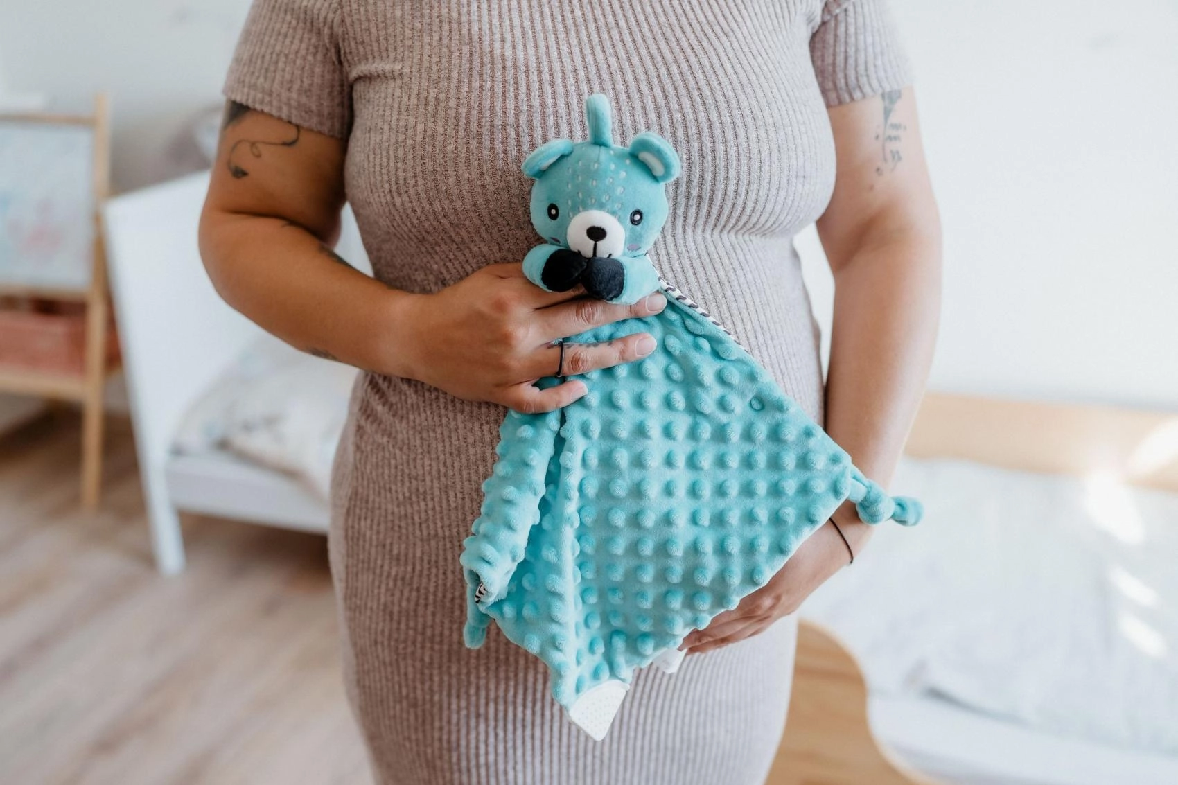 De extra zachte, gestructureerde stof zorgt voor prettige tactiele prikkels en een gevoel van geborgenheid bij het inslapen.