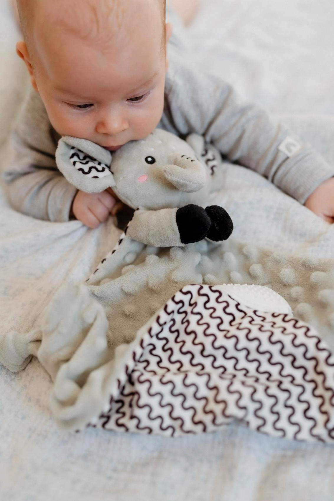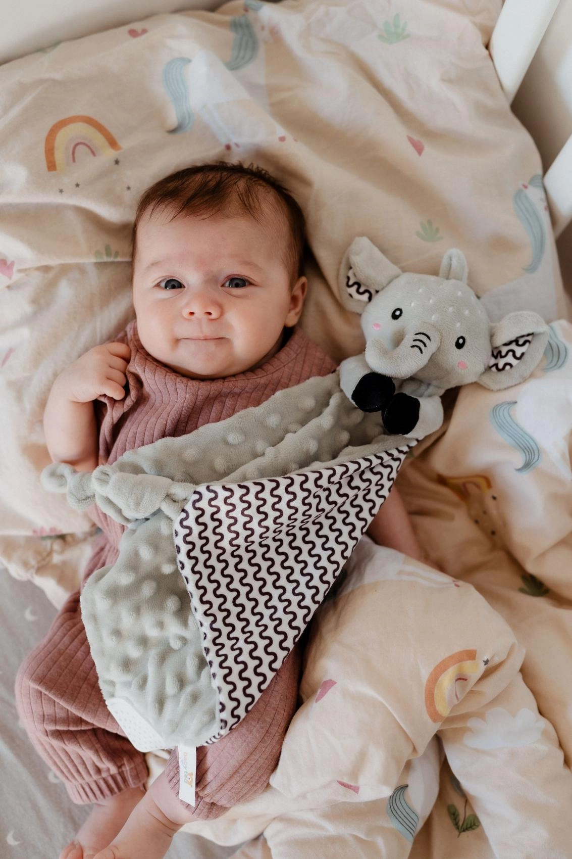 Geef je baby een rustgevende knuffelvriend voor elke dag. Het olifant knuffeldoekje van BABYTED is gemaakt van uitzonderlijk aangename minky met een uitgesproken 3D-structuur die de tast stimuleert en uitnodigt tot knuffelen. Dankzij het lichte ontwerp en de knoopjes op de hoeken kunnen zelfs de kleinste handjes het gemakkelijk vasthouden.