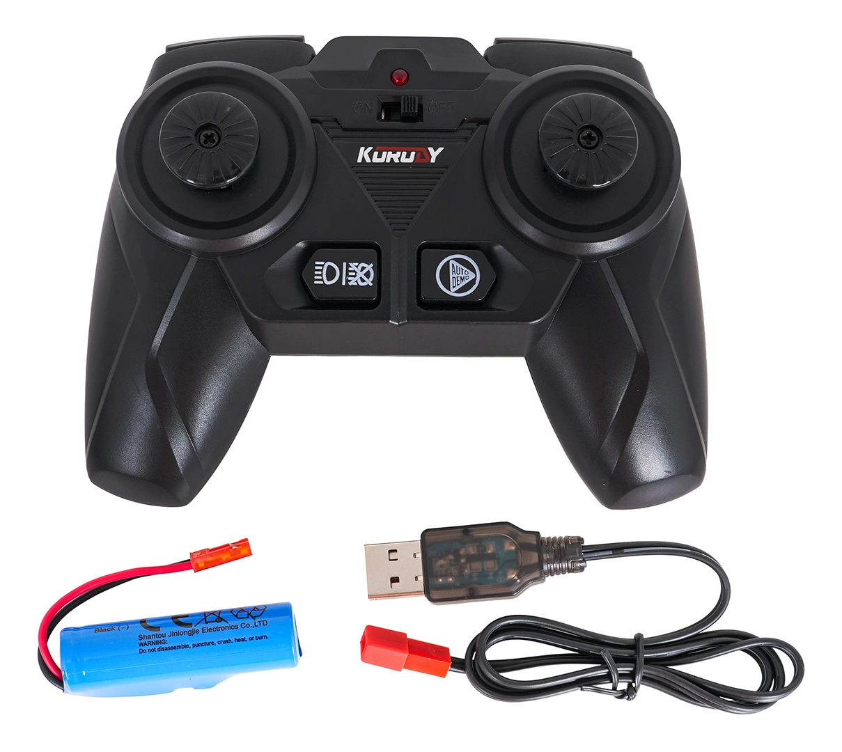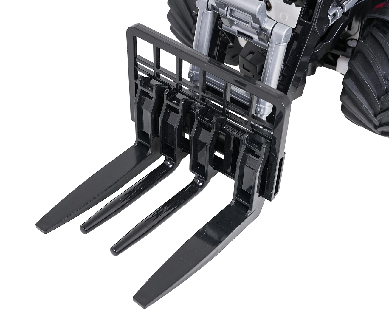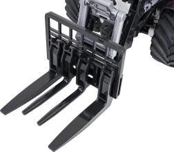 De voorlader kan handmatig worden geheven, neergelaten en gekanteld, zodat kinderen kleine voorwerpen kunnen scheppen en verplaatsen. Grote rubberen wielen zorgen voor goede tractie op verschillende ondergronden. Handig is ook het automatisch uitschakelen bij langere inactiviteit. De tractor wordt gevoed door de meegeleverde 3,7 V 500 mAh-accu; opladen via USB-kabel. De controller vereist 2× AAA (niet inbegrepen).