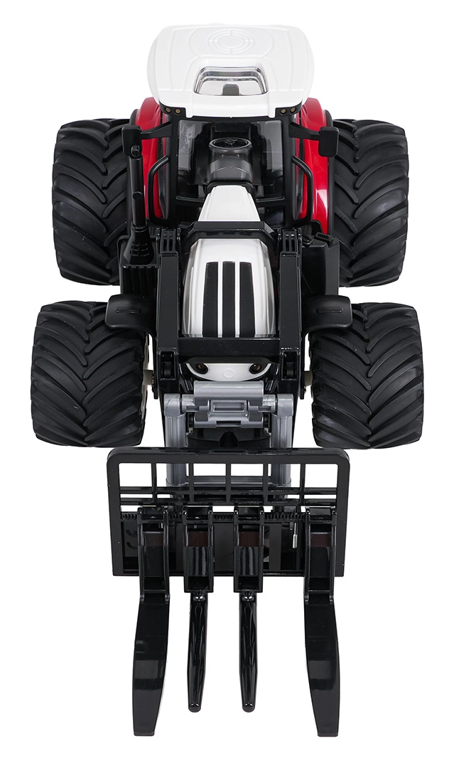 Ontdek realistisch boerderijspel met de rode RC-tractor met voorlader. Dankzij de 2,4 GHz-frequentie is de besturing soepel en storingsvrij; het voertuig rijdt vooruit, achteruit en zijwaarts en biedt ook stuurhoekl regeling. Koplampen en cabineverlichting zorgen voor extra sfeer, terwijl de demomodus alle mogelijkheden van de tractor met één druk op de knop presenteert.